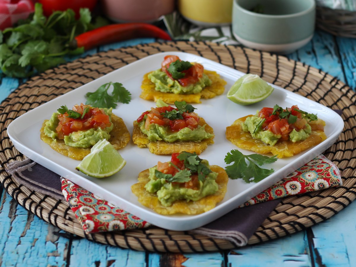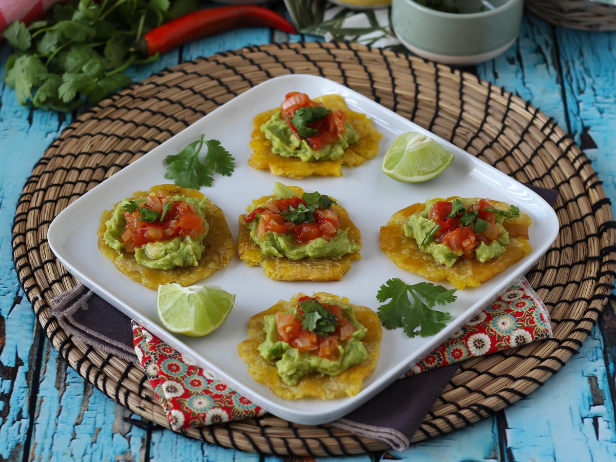 Patacones sau tostones reprezintă un deliciu culinar autentic din America Latină și Caraibe. Sunt preparate cu banane plantain care suferă un proces dublu de prăjire, creând o textură crocantă la exterior și o moliciune interioară, unică. Aceste patacone versatile pot fi savurate ca aperitiv, acompaniament sau ca bază perfectă pentru o varietate de sosuri și toppinguri. Cu această ocazie, am ales să le servim cu guacamole și hogao (sos creol columbian), care oferă prospețime, savoare și culoare. O rețetă delicioasă care va aduce o notă latină autentică în bucătăria ta și te va teleporta cu fiecare mușcătura pe o plajă tropicală, însorită :) Îndrăznești să-l prepari? Vă spunem rețeta, pas cu pas ↓↓↓