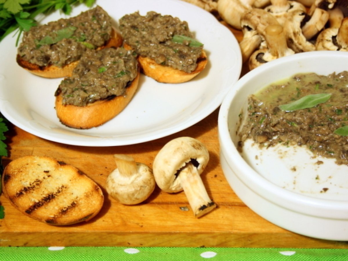 Pate de ciuperci cu ierburi aromate PrecedentulUrmătorul AntreuriFoarte ușor45 min Trimite unui prieten Printează pagina Adresează o întrebare autorului Postează o poză cu rețeta gătită de tine Ingrediente 8 250g ciuperci 1 ceapa 1 catel de usturoi 50g + 100g unt sare piper 2 linguri de coniac salvie, cimbru si patrunjel optional - 7-8 picaturi de ulei de trufe