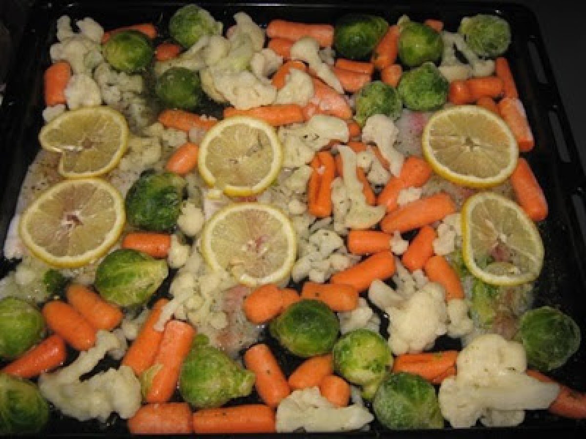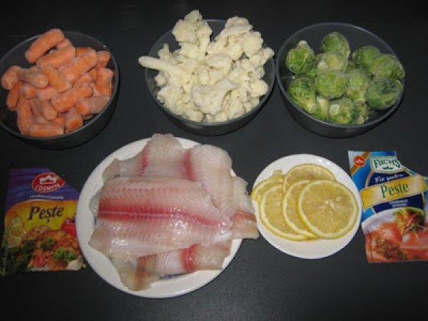Peste cu legume la cuptor PrecedentulUrmătorul AntreuriFoarte ușor40 min Trimite unui prieten Printează pagina Adresează o întrebare autorului Postează o poză cu rețeta gătită de tine Ingrediente 2 700 g file de peste 200 g conopida 200 g baby carrot 200 g varza de Brussels o jumatate de lamaie condimente pentru peste