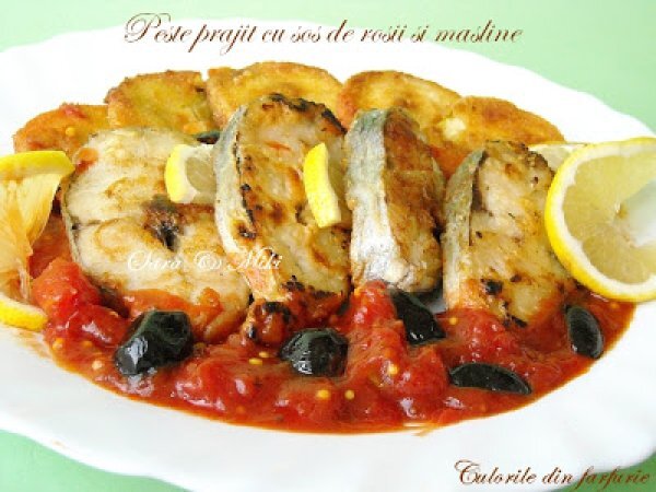 Peste prajit cu sos de rosii si masline PrecedentulUrmătorul AntreuriFoarte ușor1 h 5 m Trimite unui prieten Printează pagina Adresează o întrebare autorului Postează o poză cu rețeta gătită de tine Ingrediente 6 600 g peste alb 50 g masline 1 lg sos de rosii 2 rosii 1 foaie dafin 1 legatura patrunjel piper sare ulei
