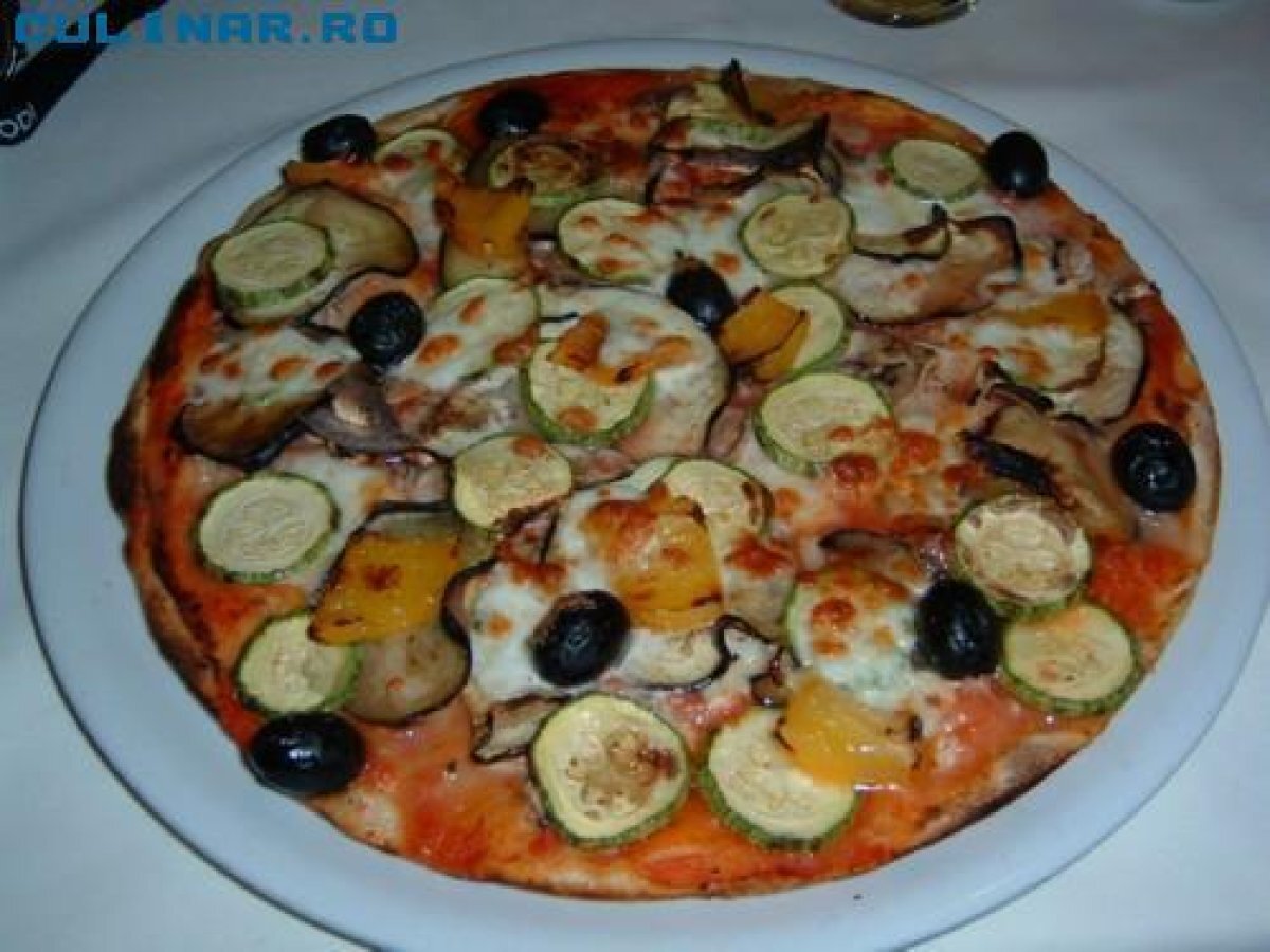 Pizza cu legume AntreuriFoarte ușor1 h 10 m Trimite unui prieten Printează pagina Adresează o întrebare autorului Postează o poză cu rețeta gătită de tine Este usor de facut. Ingrediente 4 Pentru aluat:300g faina o lingura sare 25g drojdie 125ml apa calduta 200g broccoli 2-3 ardei capia 200g masline 6-8 ciuperci 250g mozzarella sare grunjoasa o ceapa rosie 2-3 linguri ulei de floarea soarelui busuioc verde pentru ornat