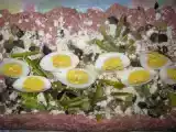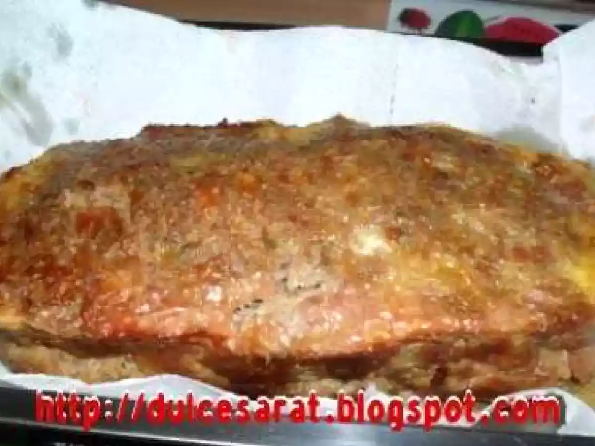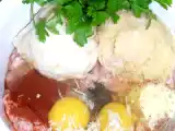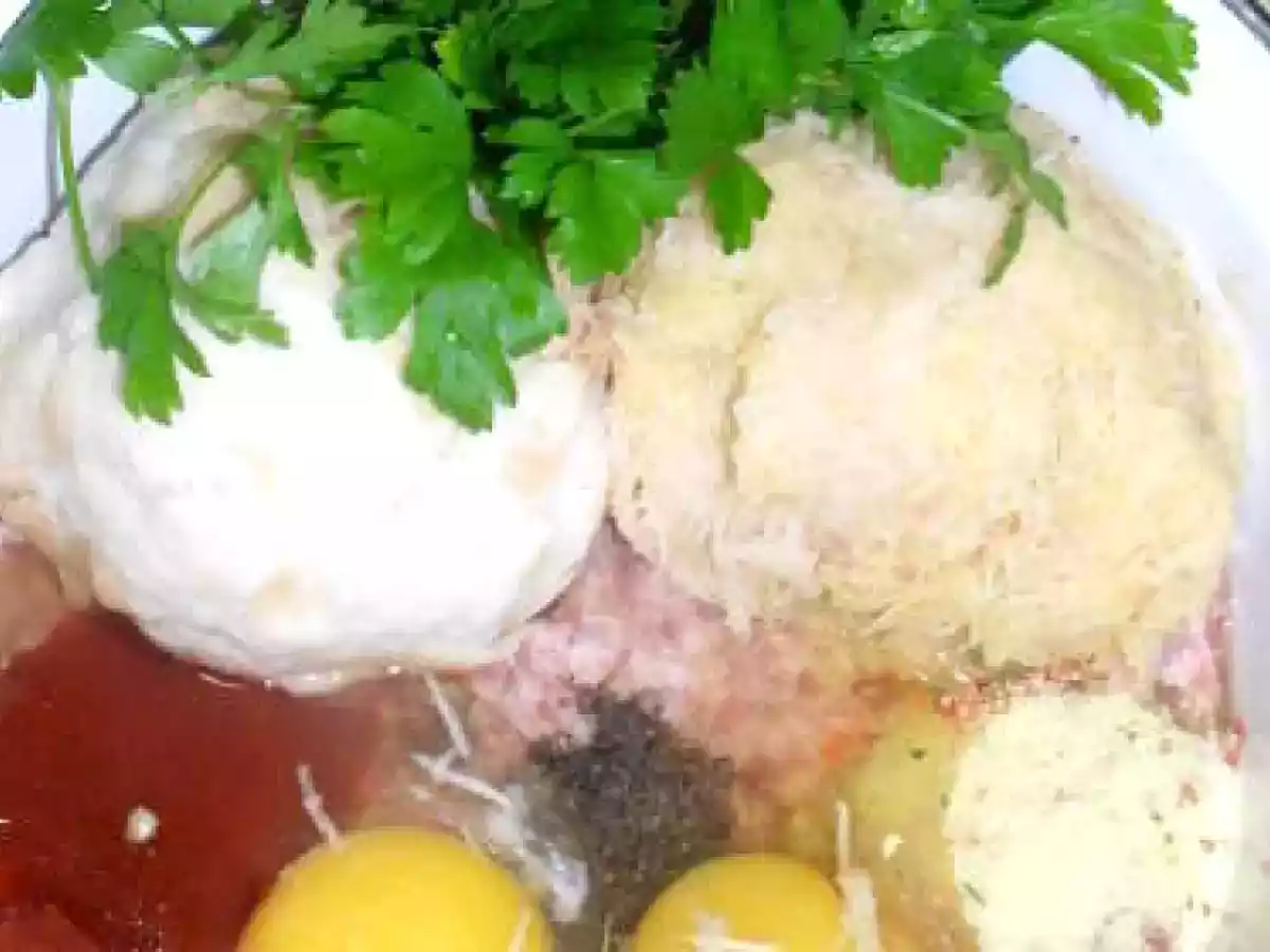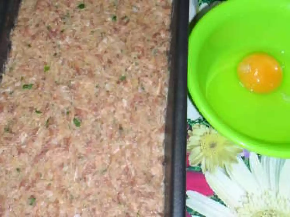 Rulada din carne tocata PrecedentulUrmătorul AntreuriUșor1 oră Trimite unui prieten Printează pagina Adresează o întrebare autorului Postează o poză cu rețeta gătită de tine Ingrediente 4 800 g carne tocata amestec (vita-porc), 2 cartofi mijlocii razuiti pe razatoarea cu gauri mici si bine storsi, 2 felii de paine inmuiate in apa apoi bine stoarse, 2 oua, sare, 2 lingurite piper, 1 lingurita boia, 2 lingurite vegeta, 1 legatura patrunjel verde tocat marunt, 5-6 catei de usturoi zdrobiti cu presa de usturoi, 1 ou pt uns rulada deasupra.