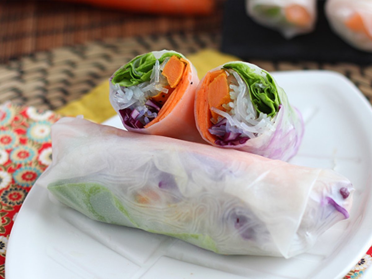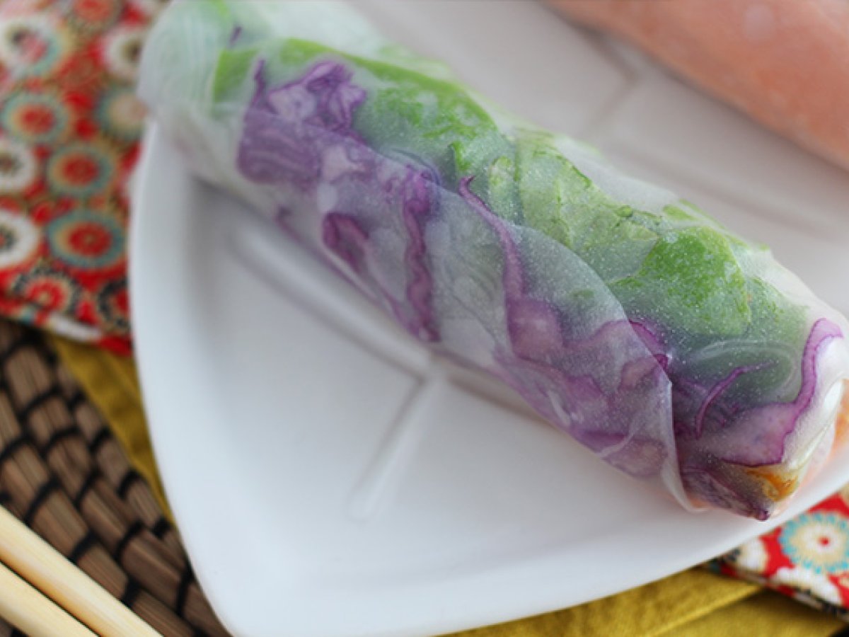 Rulouri vegetariene de primavara cu varza rosie si cartof dulce