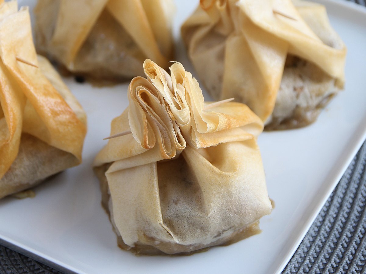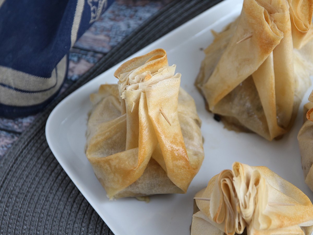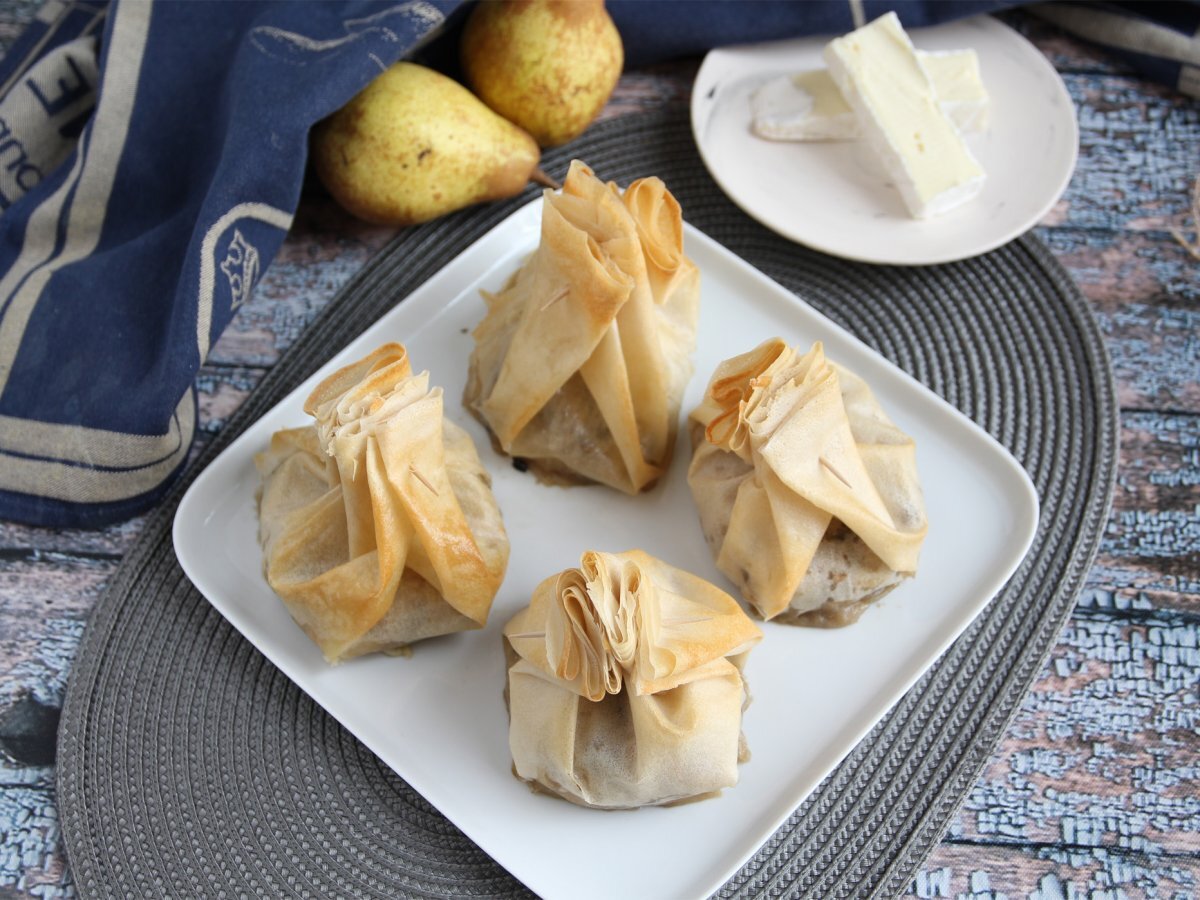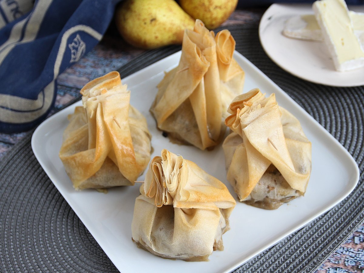 Săculeți extra crocanți cu ciuperci, brânza brie și pere