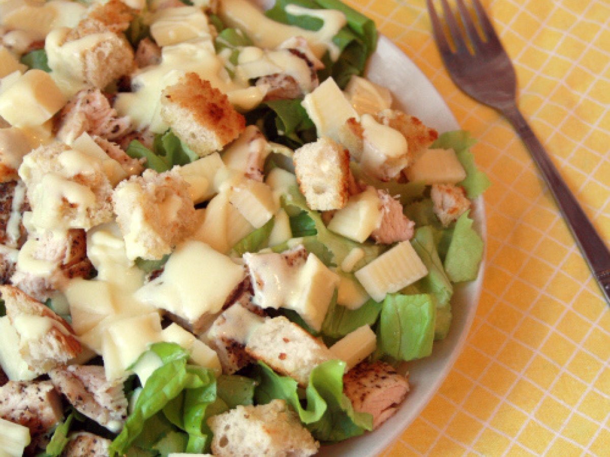 Salata caesar cu sos de iaurt PrecedentulUrmătorul AntreuriFoarte ușor35 min Trimite unui prieten Printează pagina Adresează o întrebare autorului Postează o poză cu rețeta gătită de tine Ingrediente 4 300 g piept de pui 1 salata mare romaneasca 4 felii de paine 4 linguri iaurt natural 1 lingurita mustar lamaie ulei de masline sare de mare piper 4 felii cascaval