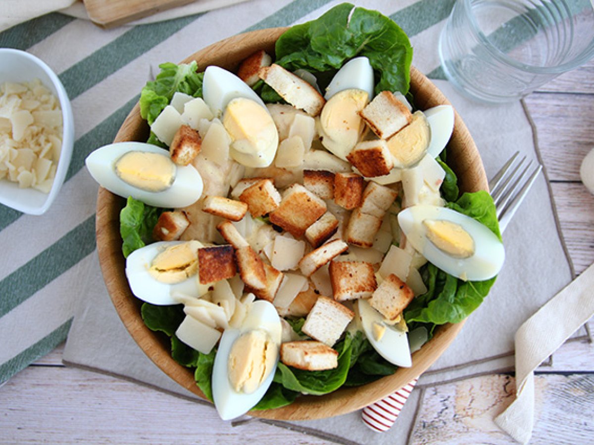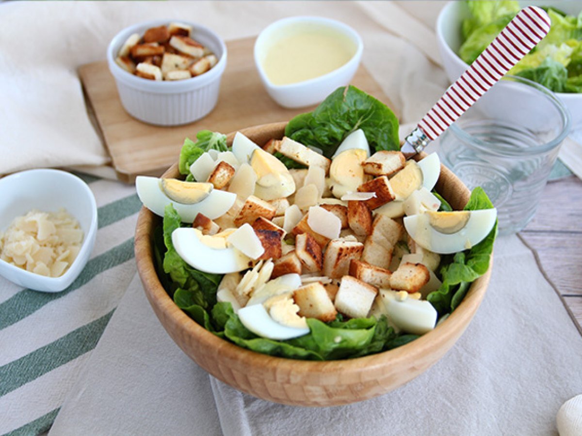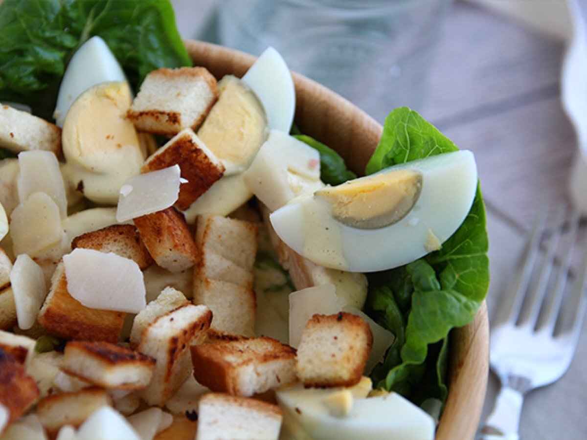 Probabil ati comandat de multe ori la restaurant salata "Caesar", insa noi va invitam sa o faceti acasa de data asta ;-) Foarte usor de facut, secretul acestei salate garnisite cu fasii de pui, sta in sosul ei.Reteta mai jos.