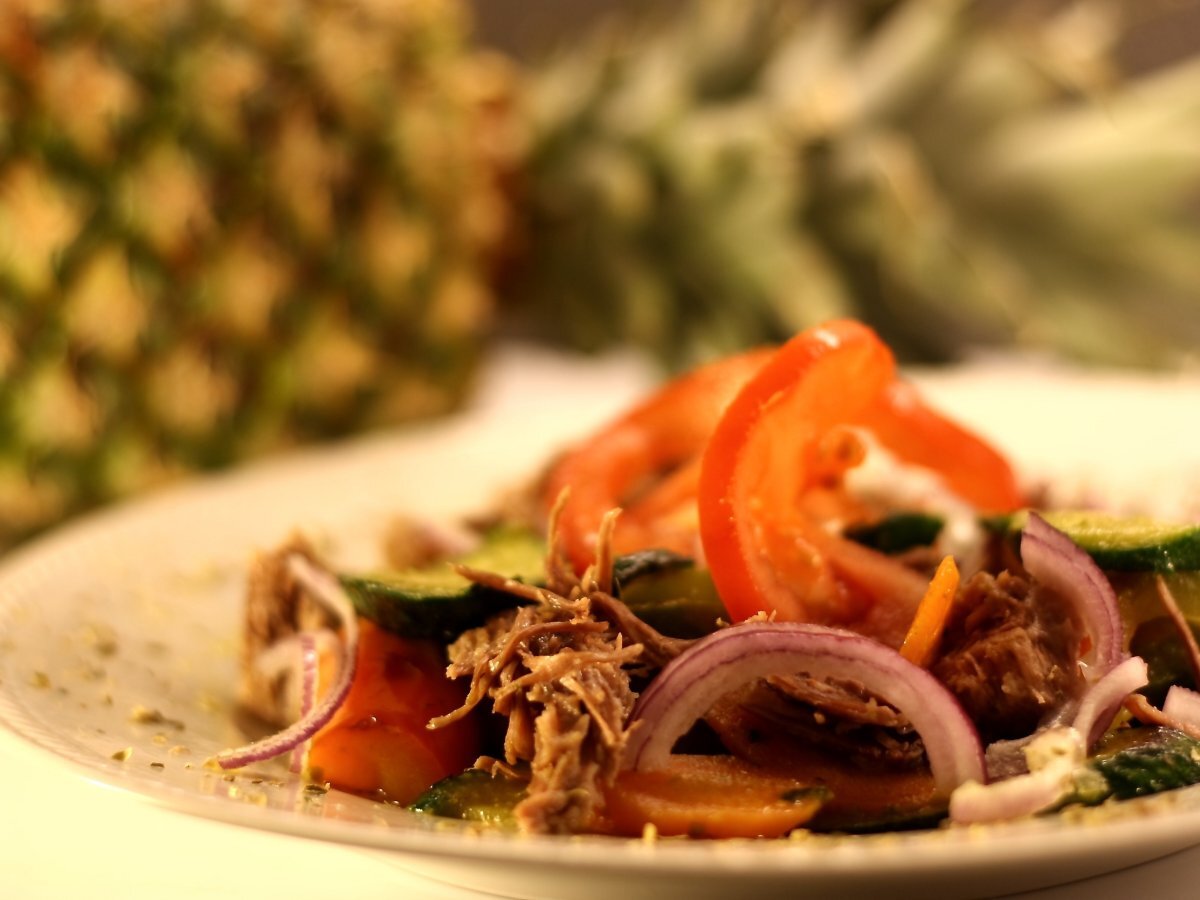 Salata calda cu carne de vita si legume AntreuriFoarte ușor10 min Trimite unui prieten Printează pagina Adresează o întrebare autorului Postează o poză cu rețeta gătită de tine Ingrediente 3 400 g carne de vita fiarta 1 ceapa rosie 2 rosii 2 dovlecei 2 morcovi 2 catei usturoi 1-2 linguri ulei de masline