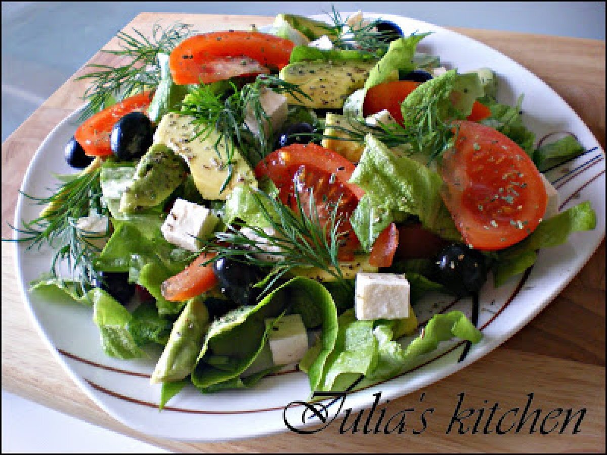 Salata cu avocado PrecedentulUrmătorul AntreuriFoarte ușor20 min Trimite unui prieten Printează pagina Adresează o întrebare autorului Postează o poză cu rețeta gătită de tine Ingrediente 4 1 avocado 1 rosie cateva frunze de salata verde 10-15 masline 100g branza telemea marar verde zeama de lamaie ulei de masline verdeturi a la Provence sare.