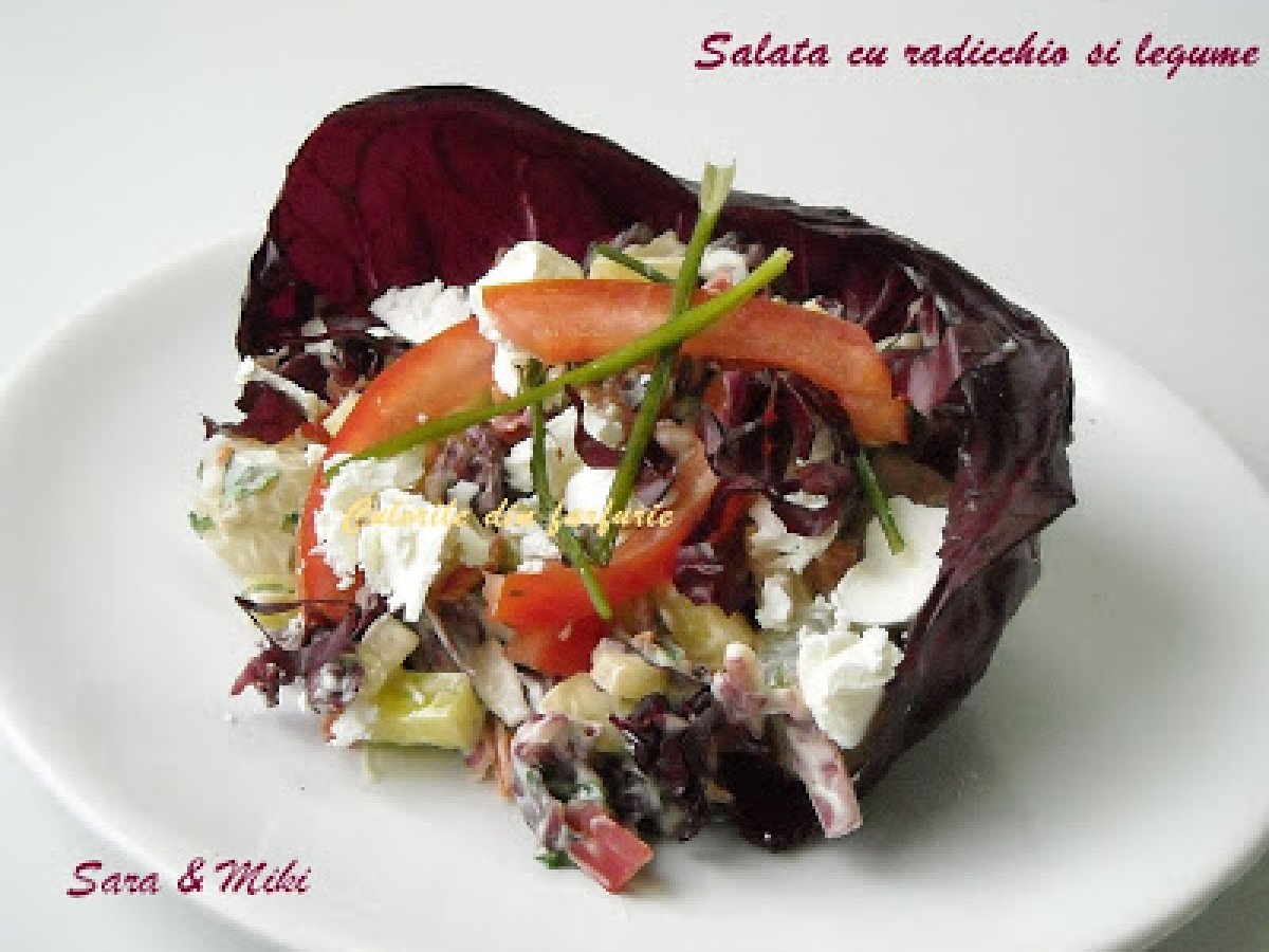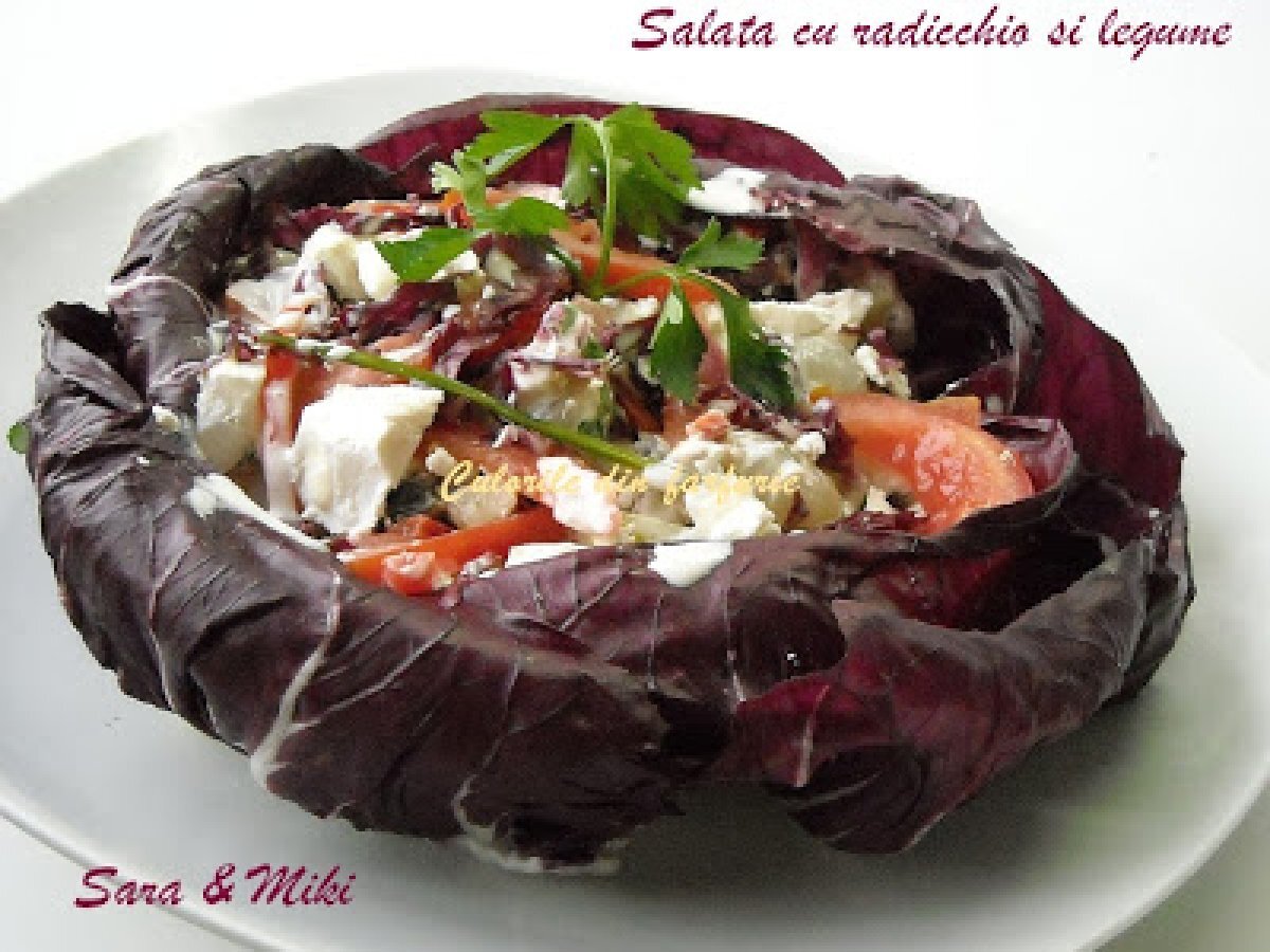 Salata cu radicchio si legume PrecedentulUrmătorul AntreuriFoarte ușor25 min Trimite unui prieten Printează pagina Adresează o întrebare autorului Postează o poză cu rețeta gătită de tine Ingrediente 4 1 radicchio ardei rosu ardei verde porumb fiert 1/2 ceapa rosie mica 1 rosie 2-3 ciuperci 2-3 lg smantana branza otet balsamic ulei masline sare piper
