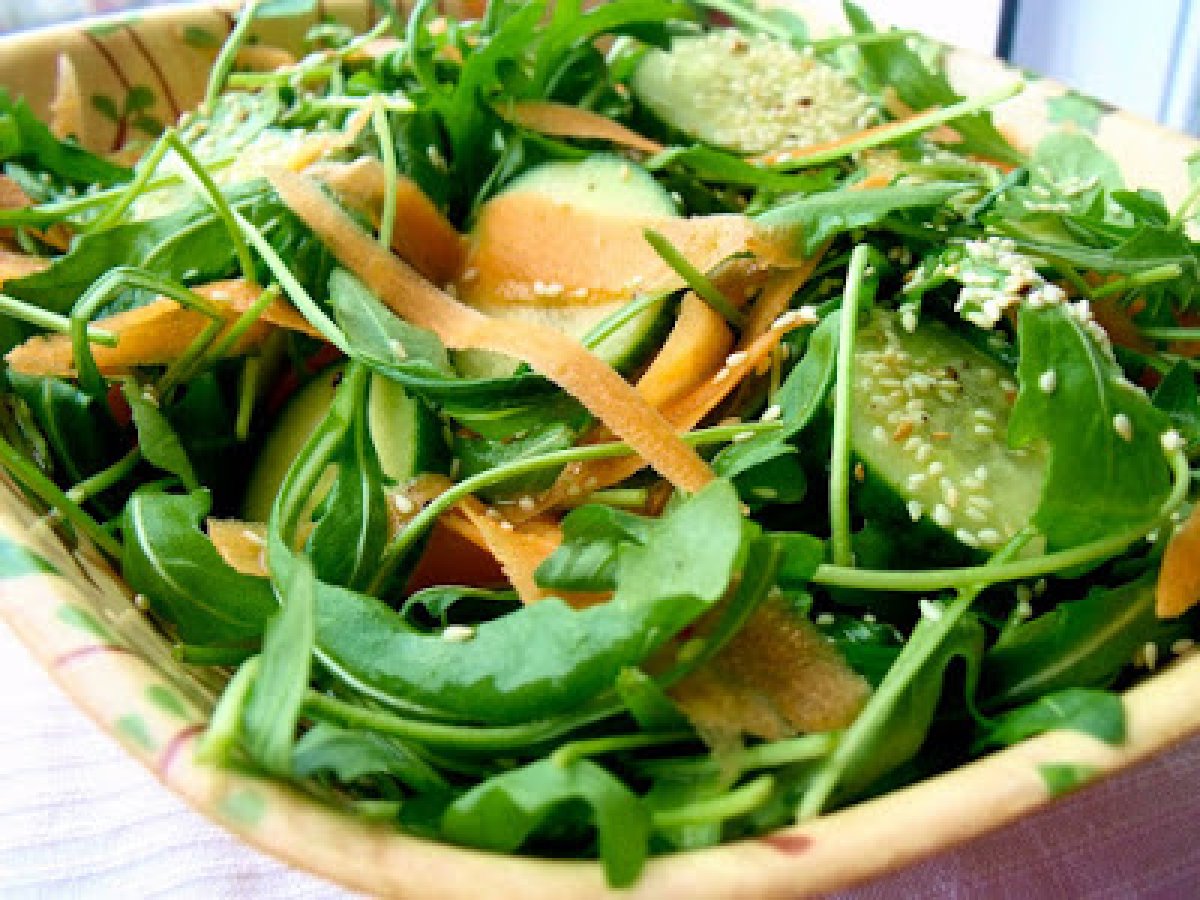 Salata cu rucola,castraveti si morcov PrecedentulUrmătorul AntreuriFoarte ușor25 min Trimite unui prieten Printează pagina Adresează o întrebare autorului Postează o poză cu rețeta gătită de tine Ingrediente 6 2 morcovi,curatati si razuiti cu razuitorul de legume, 1 castravete lung,taiat rondele, 3 miini bune de rucola, 1 lingura de susan,pentru decor. dressing: 2 linguri ulei de masline, 1 lingura otet de mere, 1 lingurita de miere,sare, piper dupa gust.