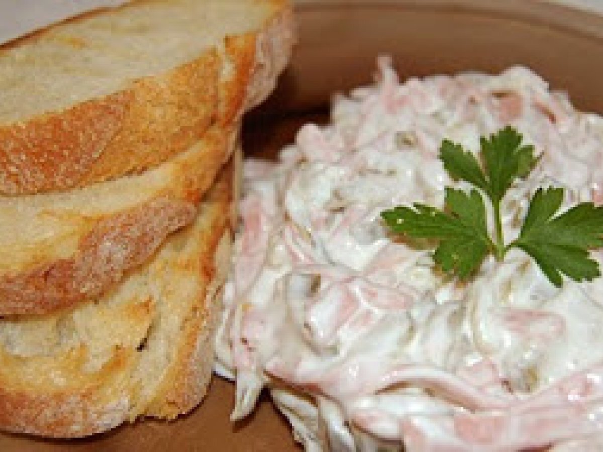 Aceasta salata face parte din retetele culinare ce se pot pregati foarte rapid si in orice moment al zilei. Salata de sunca o puteti servi si in rosii curatate de seminte sau in ardei.