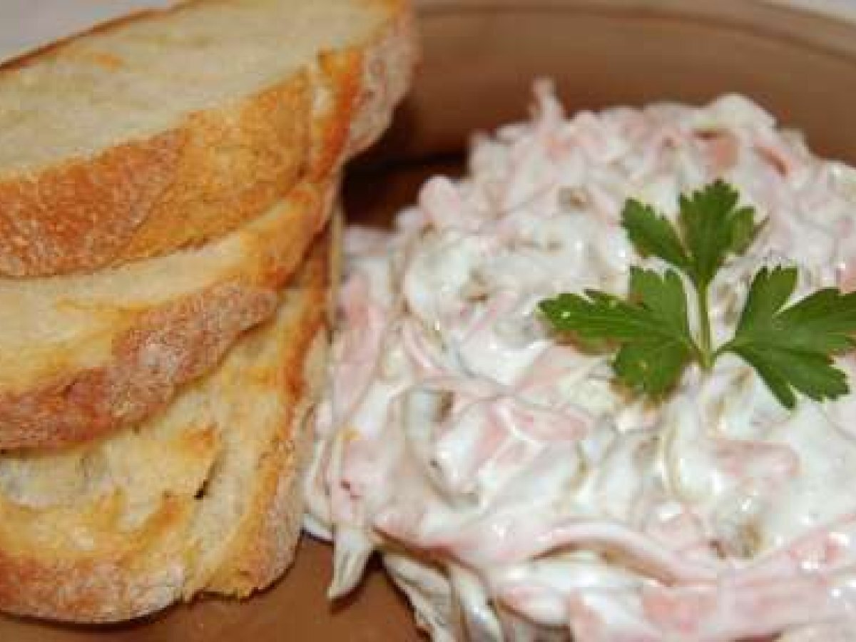 Salata cu sunca presata AntreuriFoarte ușor20 min Trimite unui prieten Printează pagina Adresează o întrebare autorului Postează o poză cu rețeta gătită de tine Ingrediente 2 300 gr sunca presata 3 castraveti murati maioneza sare, piper
