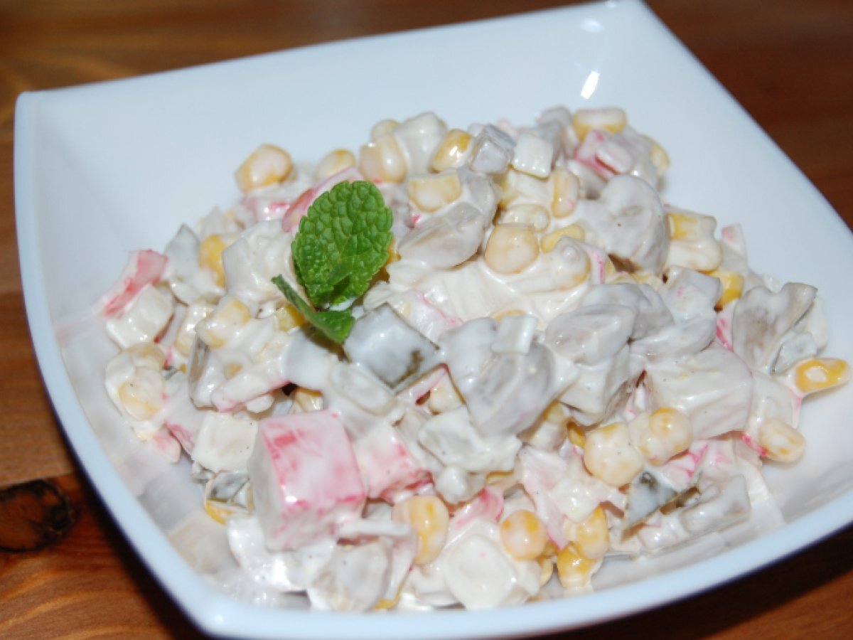Am descoperit surimi in facultate, facut salata cu maioneza si usturoi; dar apoi am imbunatatit-o .