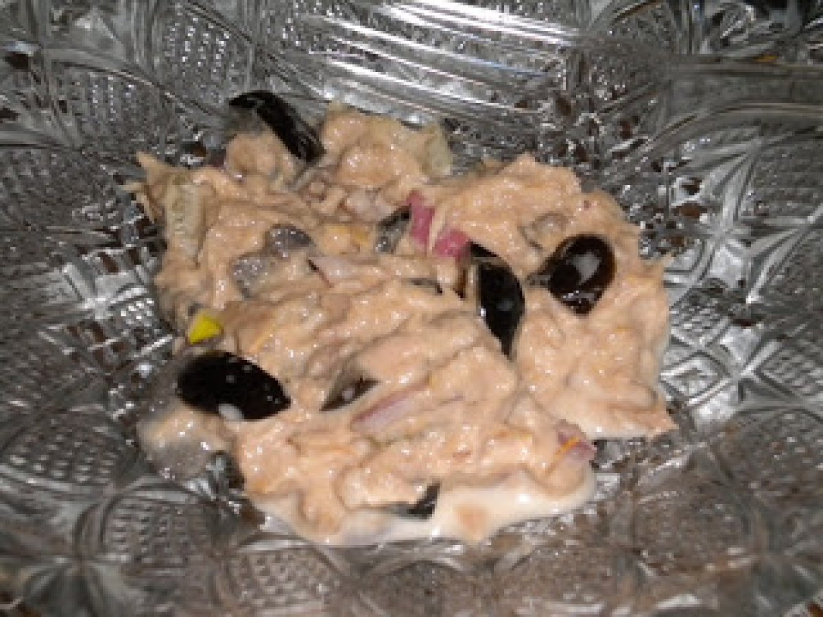 Salata cu ton (masa de revelion 2011) AntreuriFoarte ușor24 min Trimite unui prieten Printează pagina Adresează o întrebare autorului Postează o poză cu rețeta gătită de tine Ingrediente 4 2 conserve de ton bucati in ulei, o ceapa, vreo 10-12 masline mari, maioneza si zeama de la o lamaie, o jumatate de ardei gras.