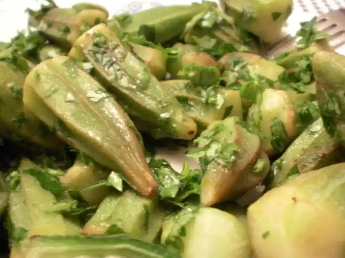 Salata de bame AntreuriFoarte ușor17 min Trimite unui prieten Printează pagina Adresează o întrebare autorului Postează o poză cu rețeta gătită de tine Ingrediente 1 jumatate de legatura de patrunjel (spalata si tocata marunt) sare piper negru proaspat macinat 1-2 lingurite cu ulei de masline presat la rece 1-2 lingurite cu otet balsamic si 350 de grame de bame.