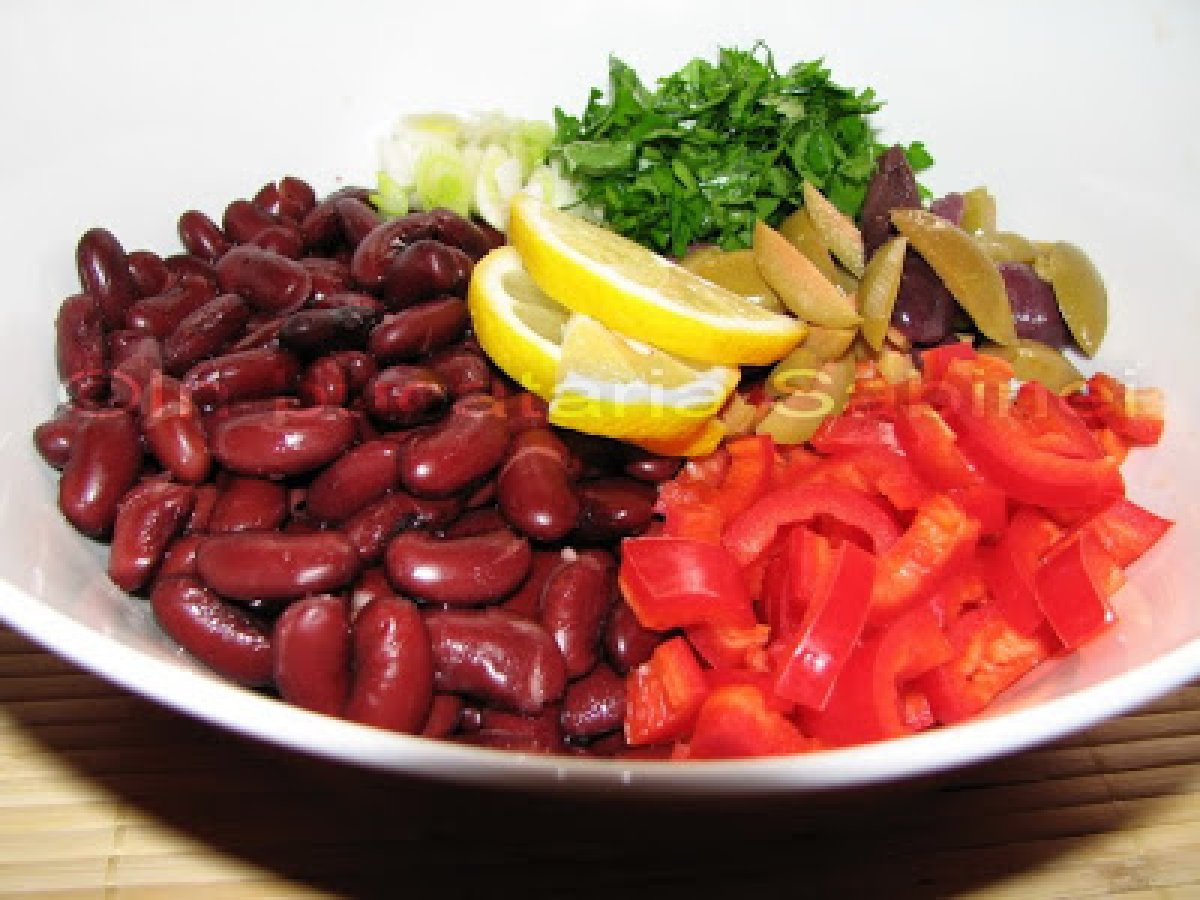 Salata de fasole rosie PrecedentulUrmătorul AntreuriFoarte ușor30 min Trimite unui prieten Printează pagina Adresează o întrebare autorului Postează o poză cu rețeta gătită de tine Ingrediente 4 o conserva fasole rosie 1 ardei capia/gogosarmasline fara samburi 2 fire ceapa verde 1 legatura patrunjel lamaie 2 lingurite de uleisare piper boia