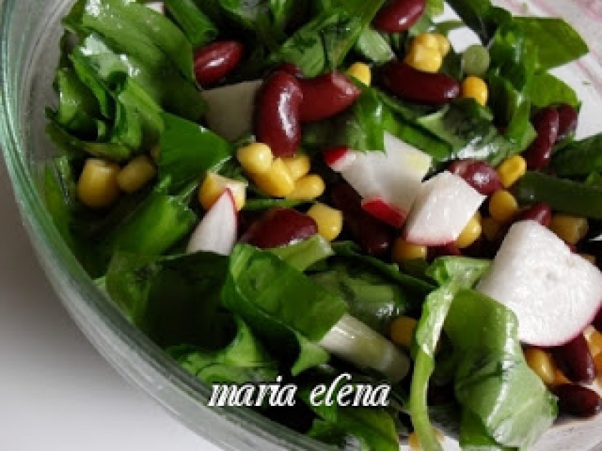 Salata de leurda cu fasole rosie si porumb PrecedentulUrmătorul AntreuriFoarte ușor25 min Trimite unui prieten Printează pagina Adresează o întrebare autorului Postează o poză cu rețeta gătită de tine Ingrediente 4 1 mana frunze de leurda, 2 linguri boabe fasole rosie din conserva, 2 linguri boabe porumb din conserva, 2 fire de ceapa verde, 2 ridichi, sare dupa gust, 1 lingura ulei, otet de mere cu miere.