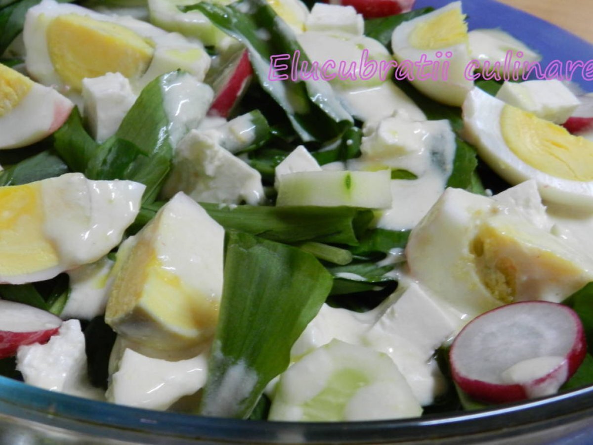 Salată de leurdă cu ouă AntreuriFoarte ușor10 min Trimite unui prieten Printează pagina Adresează o întrebare autorului Postează o poză cu rețeta gătită de tine o salata minunata Ingrediente 2 2 legături de leurdă, 2 ouă fierte, 2 castraveciori, 2 ridichi, 100 g brânză telemea de vacă, 3 linguri cu iaurt, o lingură ulei de măsline, o linguriță muștar, zeama de la 1/2 lămâie, sare, piper.