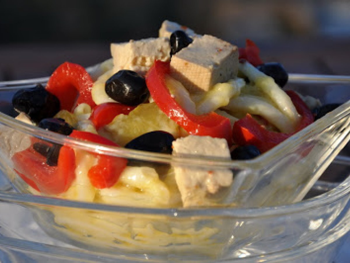 Salata de paste cu maioneza PrecedentulUrmătorul AntreuriFoarte ușor10 min Trimite unui prieten Printează pagina Adresează o întrebare autorului Postează o poză cu rețeta gătită de tine Ingrediente 2 300 g. paste 4-5 castraveciori murati 100 g. masline negre 2 gogosari murati 200 g. branza de soia o cana cu maioneza vegetala sare zeama de lamaie