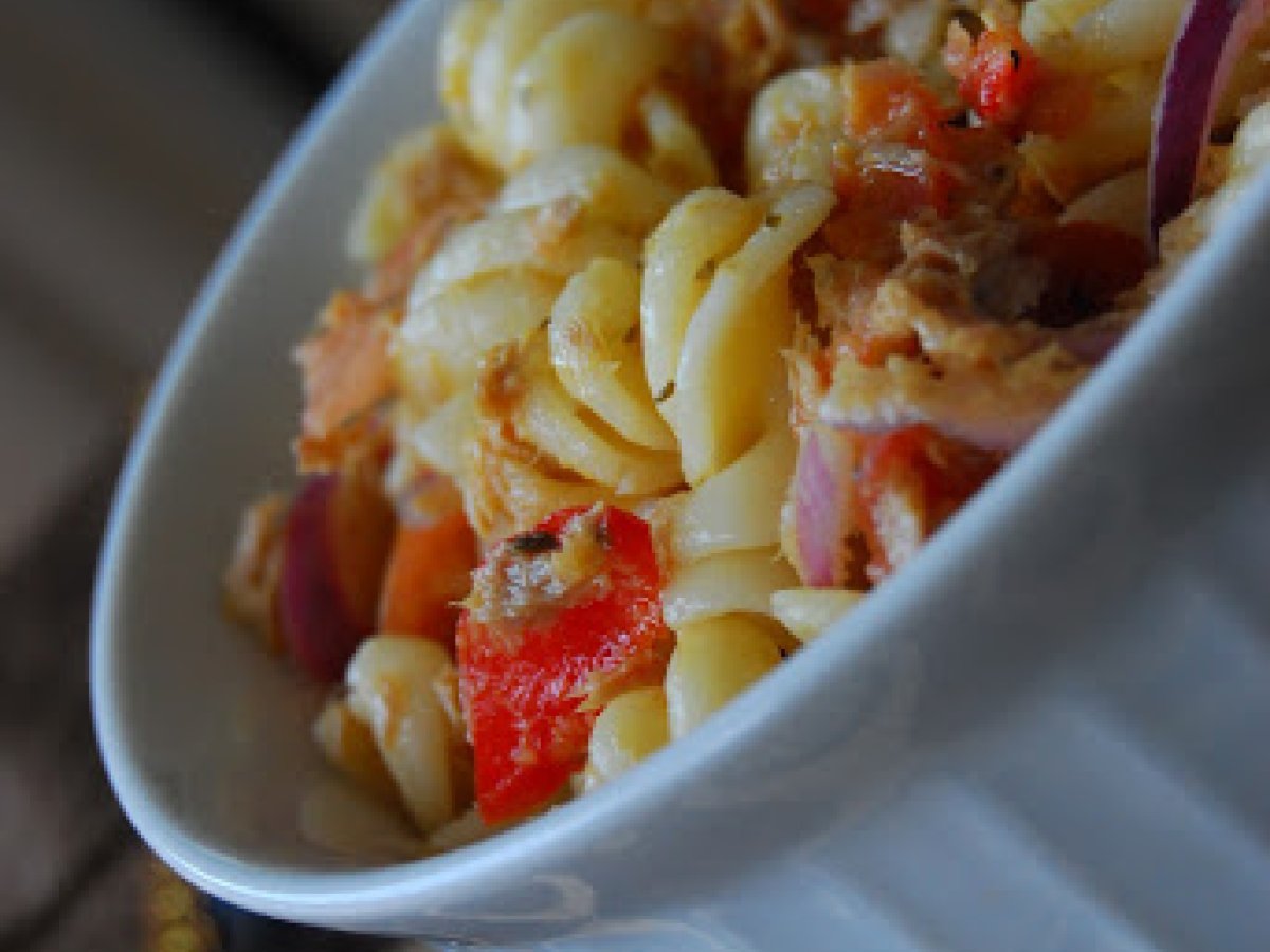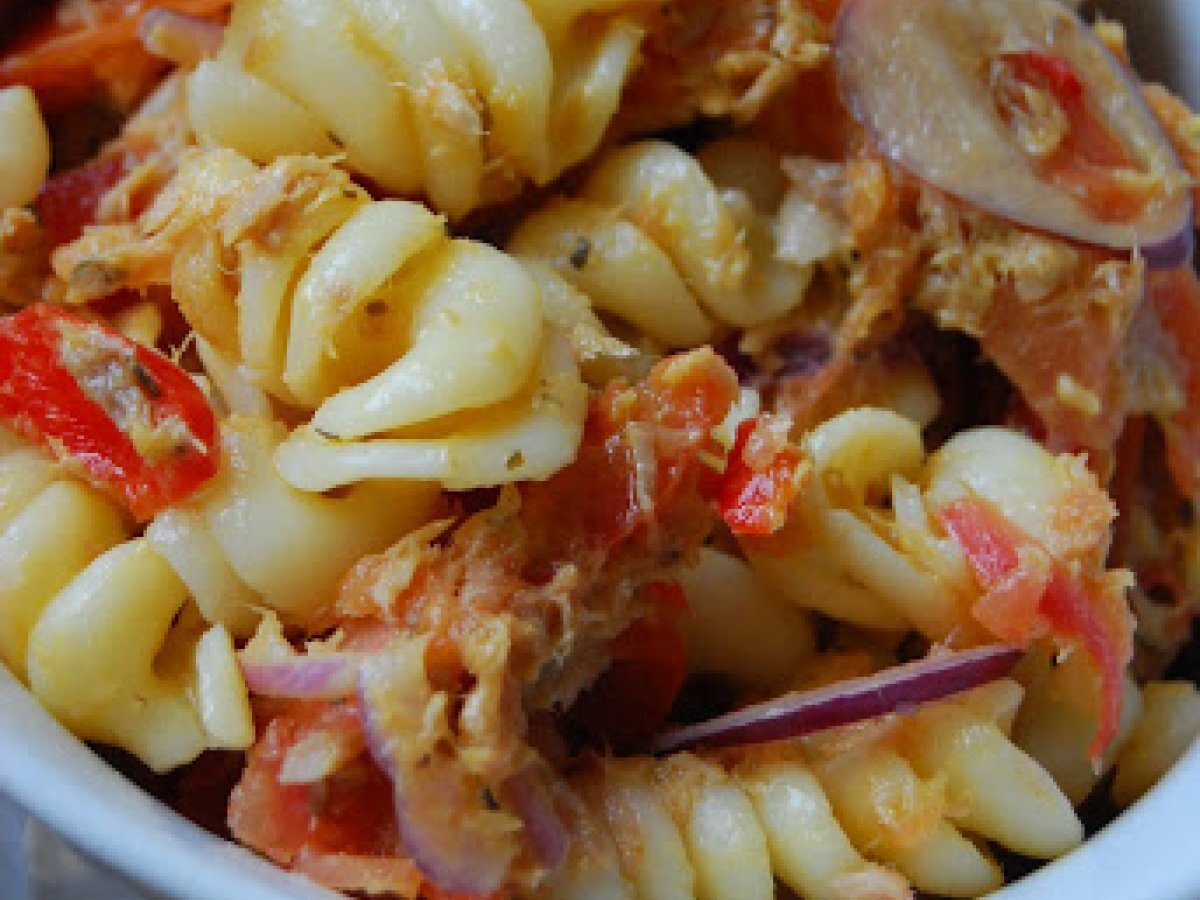 Salata de paste cu ton PrecedentulUrmătorul AntreuriFoarte ușor35 min Trimite unui prieten Printează pagina Adresează o întrebare autorului Postează o poză cu rețeta gătită de tine Ingrediente 4 200 g fusilli 1 ardei rosu gras copt si taiat cubulete 1 ceapa rosie taiata felii subtiri 5 rosii cherry felii 200 g ton Dressing: 6 linguri ulei masline 4 linguri otet vin alb 3 linguri suc lima 2 lingurite mustar 1 lingurita miere 5 lingurite busuioc