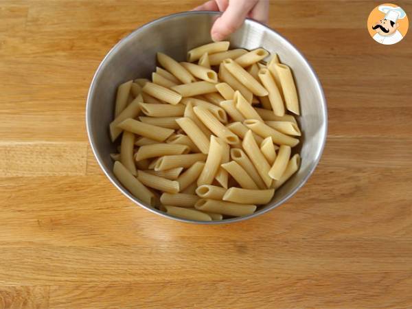 Gatiti pastele in functie de timpul de gatire indicat pe ambalaj. Clatiti-le in apă rece pentru a le raci rapid.
