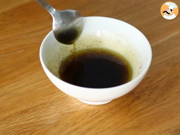 Se amesteca uleiul de masline cu otetul balsamic, sarea, piperul si se pune peste salata acest sos.