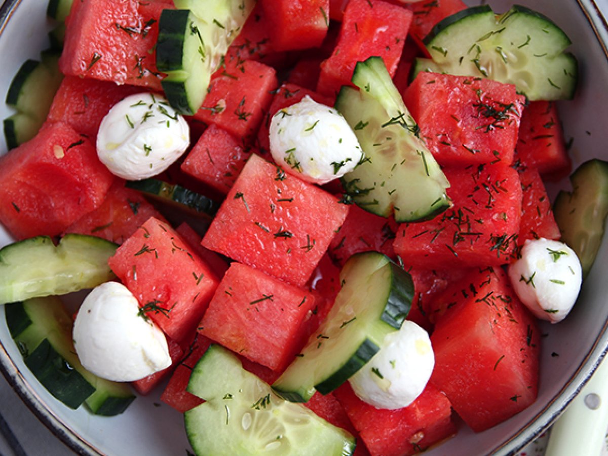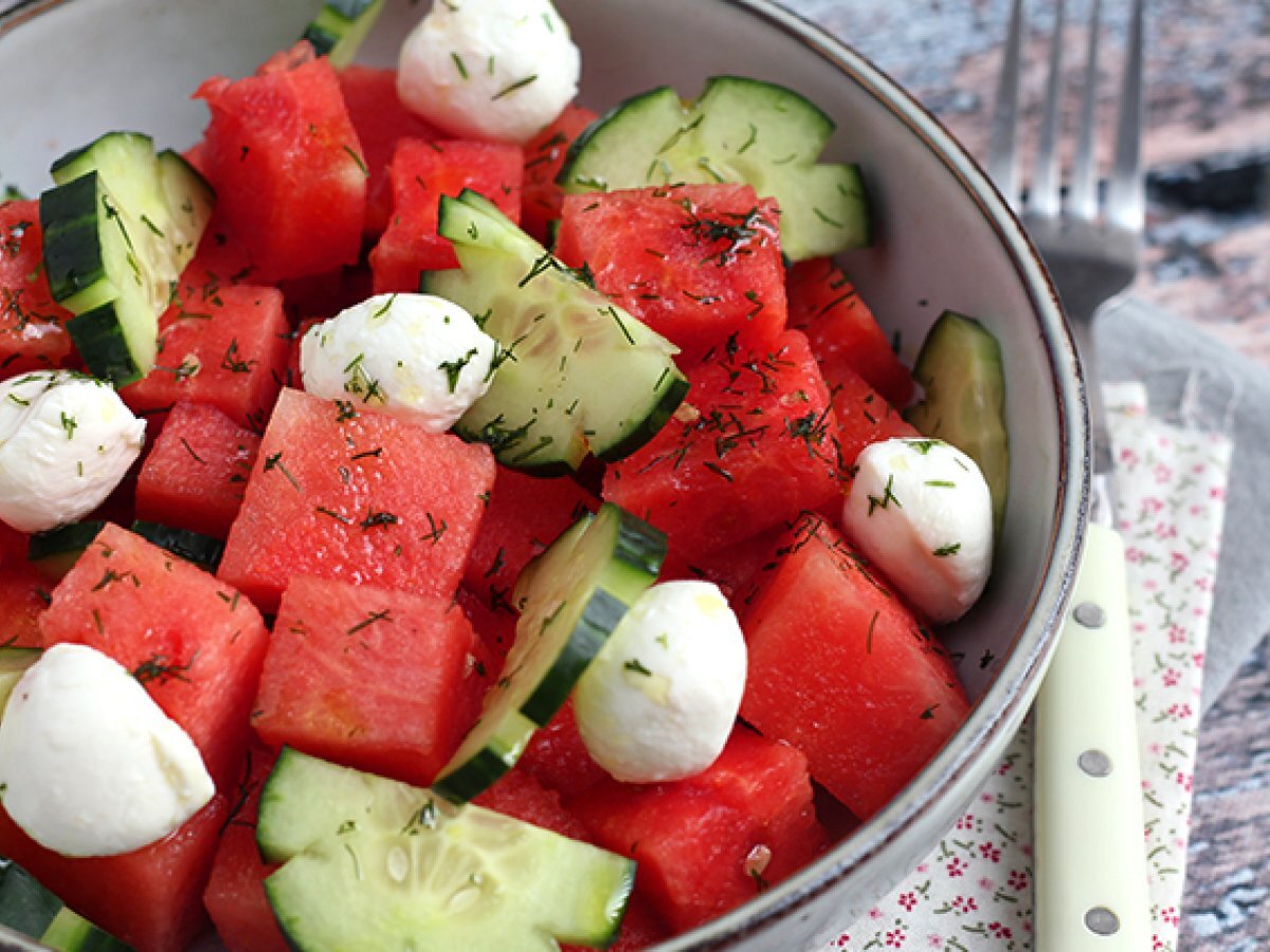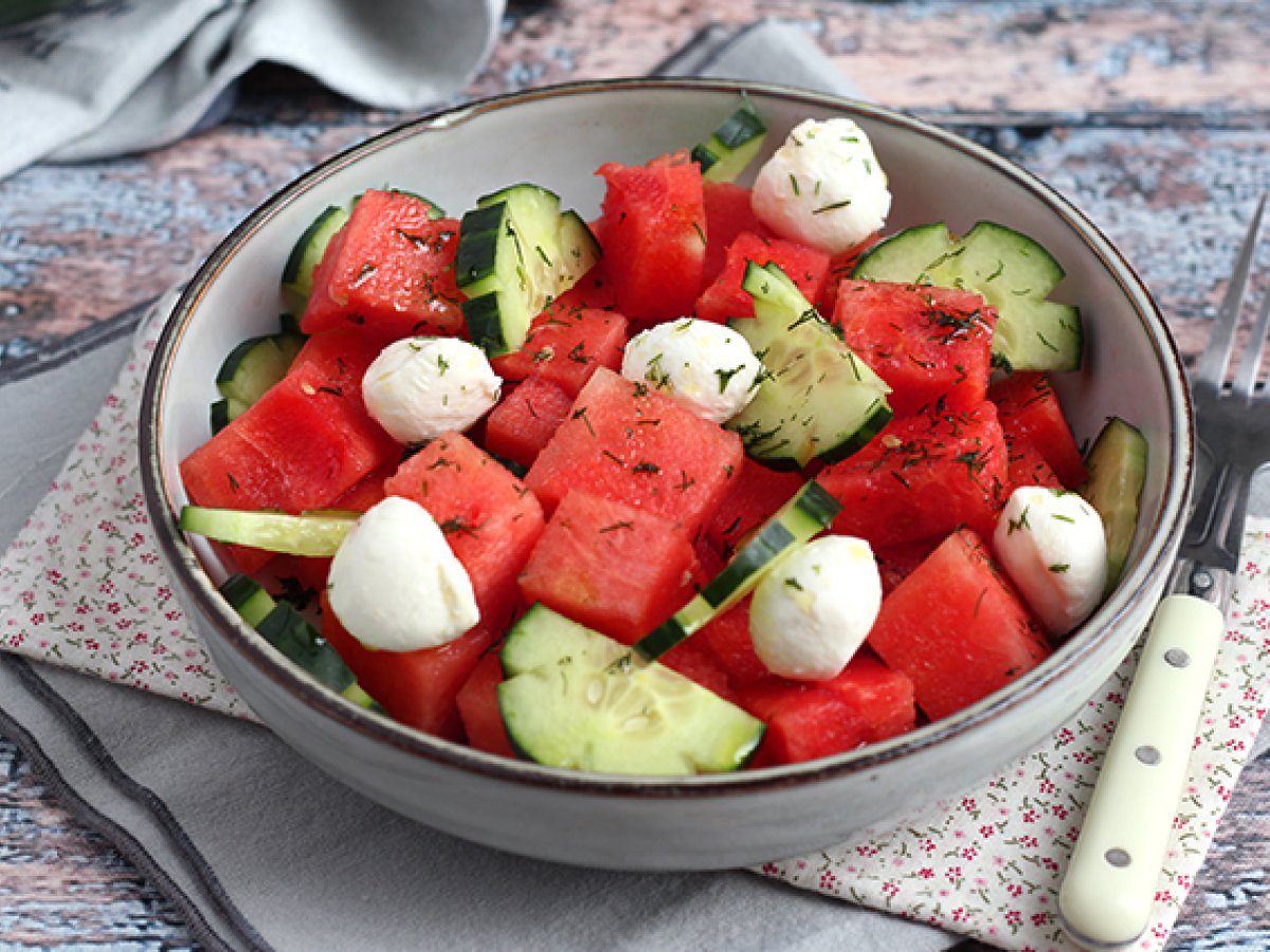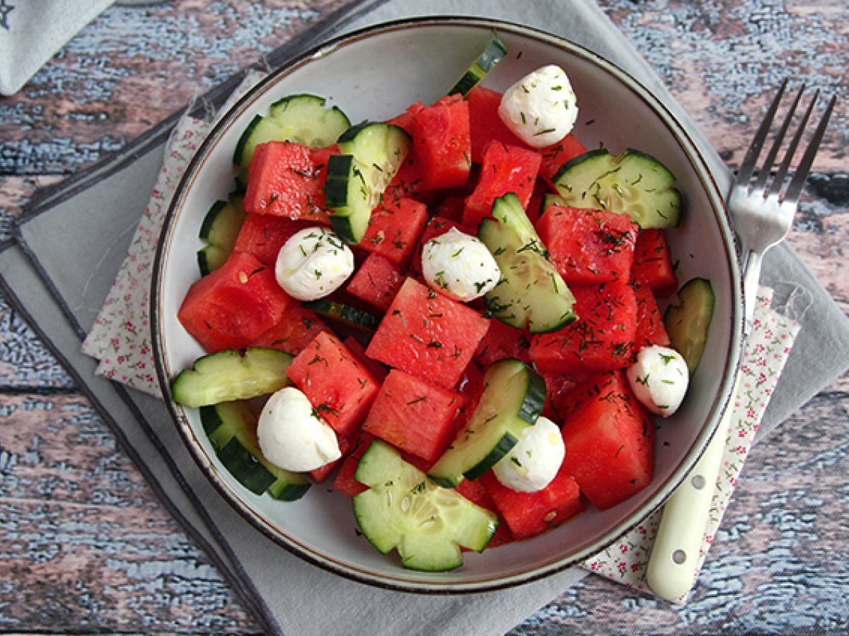 Va doriti prospetime la masa? Salata noastra de castraveti cu pepene verde este exact ce va doriti! Combinati-o cu cateva bile de mozzarella, un pic de ulei de masline si obtineti salata perfecta!