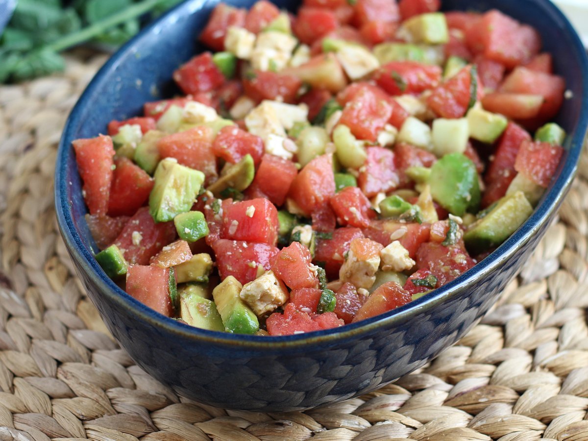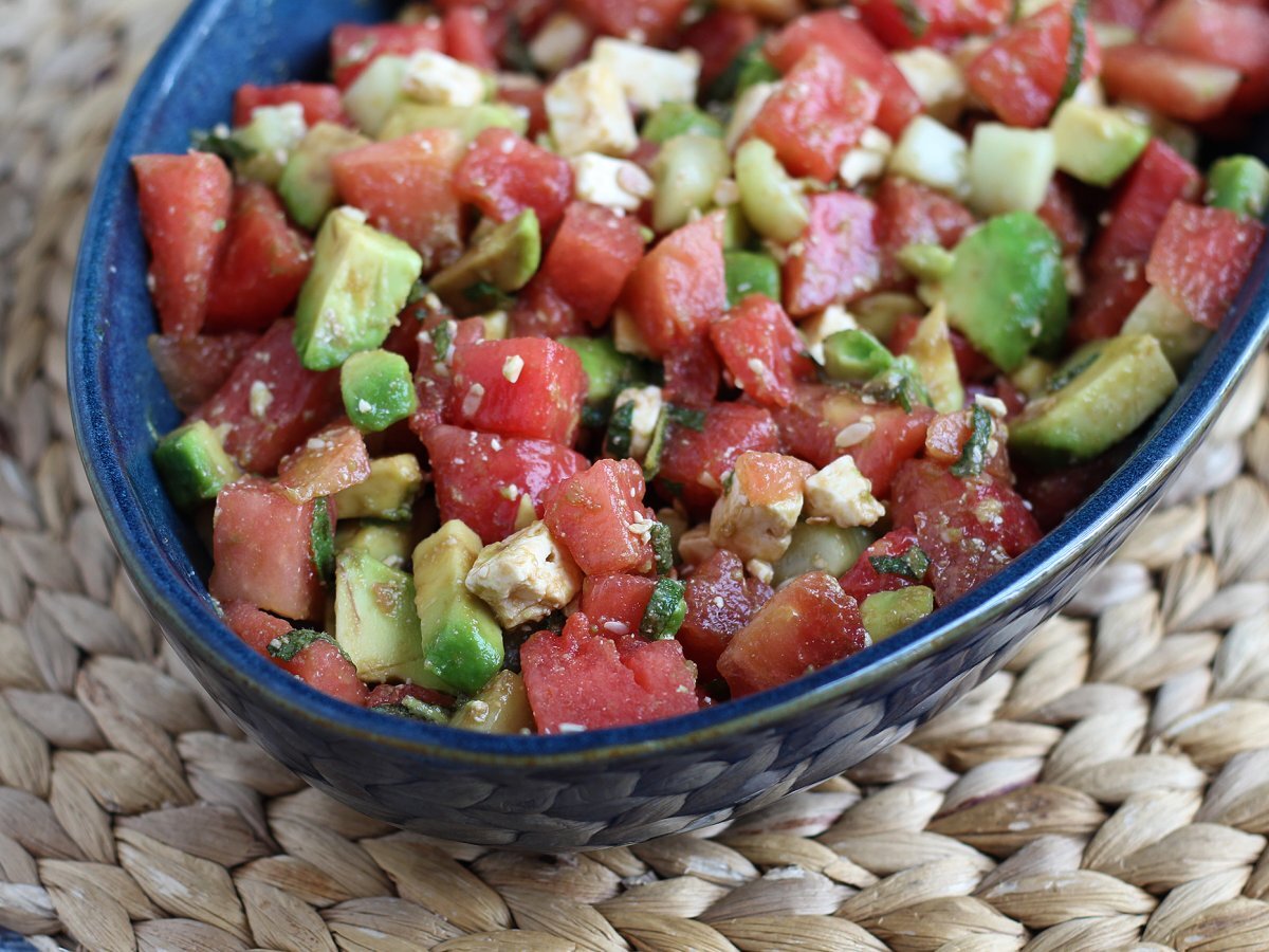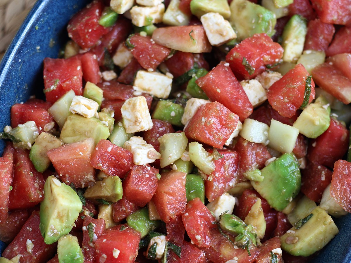 Salată de pepene verde, feta, avocado și castraveti: extra fresh!