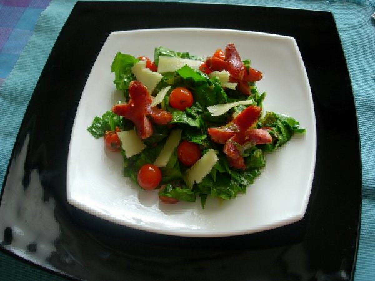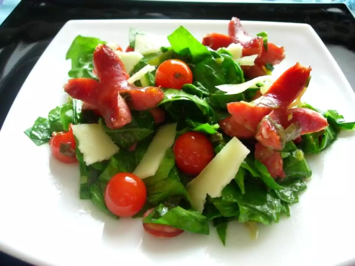 Salata de spanac crud cu carnati PrecedentulUrmătorul AntreuriFoarte ușor15 min Trimite unui prieten Printează pagina Adresează o întrebare autorului Postează o poză cu rețeta gătită de tine Ingrediente 4 O salata plina de vitamine si foarte satioasa 100 g spanac 50 g cascaval 8 carnati de bere 1 fir praz 2 linguri ulei de masline 1 lingura miere 2 linguri otet de mere cu miere 20-30 rosii cherry Sare