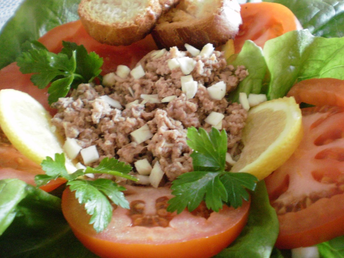 Salata de ton cu hrean PrecedentulUrmătorul AntreuriFoarte ușor15 min Trimite unui prieten Printează pagina Adresează o întrebare autorului Postează o poză cu rețeta gătită de tine Ingrediente 1 Ingrediente: putin hrean taiat marunt frunze de patrunjel proaspat suc de lamaie 1 lamaie 1 conserva de ton maruntit boabe piper 1 rosie frunze de salata verde si sare