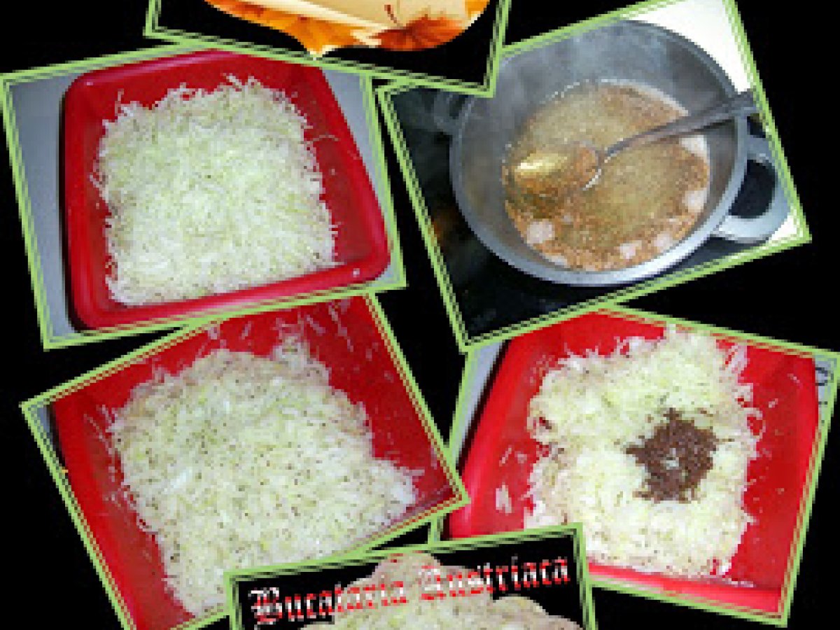 Salata de varza verde cu chimen PrecedentulUrmătorul AntreuriFoarte ușor30 min161 Kcal Trimite unui prieten Printează pagina Adresează o întrebare autorului Postează o poză cu rețeta gătită de tine Ingrediente 6 600g varza taiata fideluta 3ls otet de mere 6ls ulei vegetal 1lc seminte de chimen sare 1/16l apa Cost estimat: 1.43Euros€ (0.24€/porție)