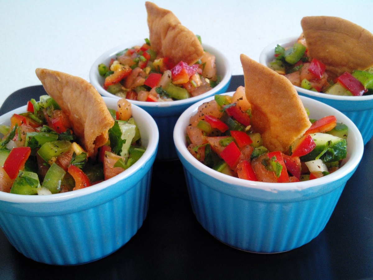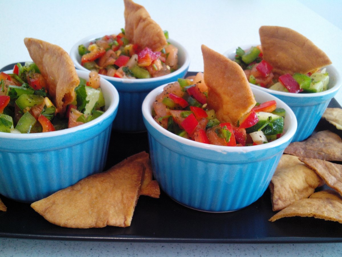 Salata fattoush (reteta video) PrecedentulUrmătorul AntreuriFoarte ușor20 min Trimite unui prieten Printează pagina Adresează o întrebare autorului Postează o poză cu rețeta gătită de tine Este o salata libaneza foartei sanatoasa. Ingrediente 4 1 ceapa (mica taiata marunt) 1 castravete (taiat cercuri si fiecare cerc taiat in patru) 1 ardei rosu (taiat marunt) 1 ardei verde (taiat marunt) O legatura patrunjel (taiat fin) 2 rosi (taiate bucatele mici) O lingura menta uscata (dar daca aveti menta proaspata este mai bine) Putin boia Putin piper Putina sare 4 linguri ulei de masline 4 linguri suc de lamaie 2 lipii arabeasti le-am uns cu putin ulei (le-am taiat triunghiuri si le am pus la cuptor preincalzit la 180 de grade pentru 5 minute pana am obtinut o culoare aurie)
