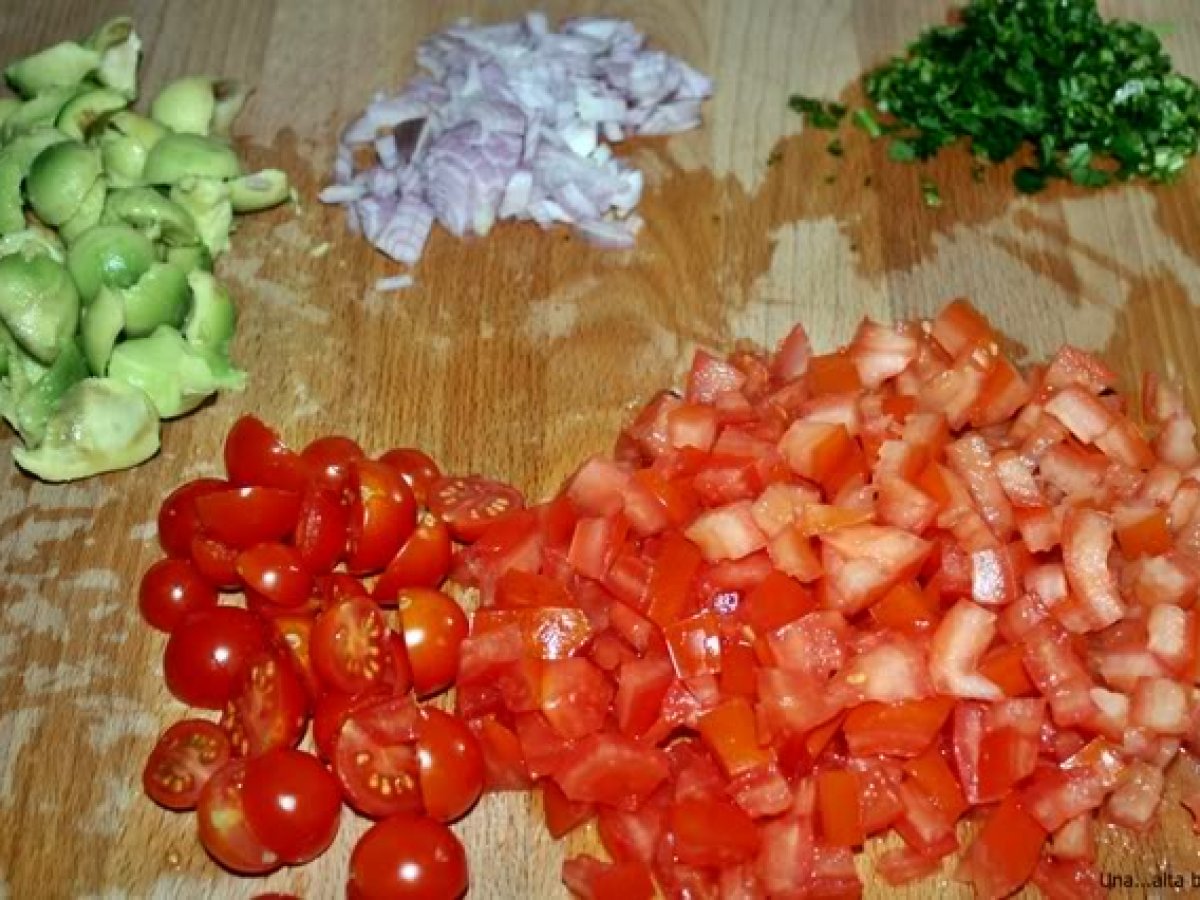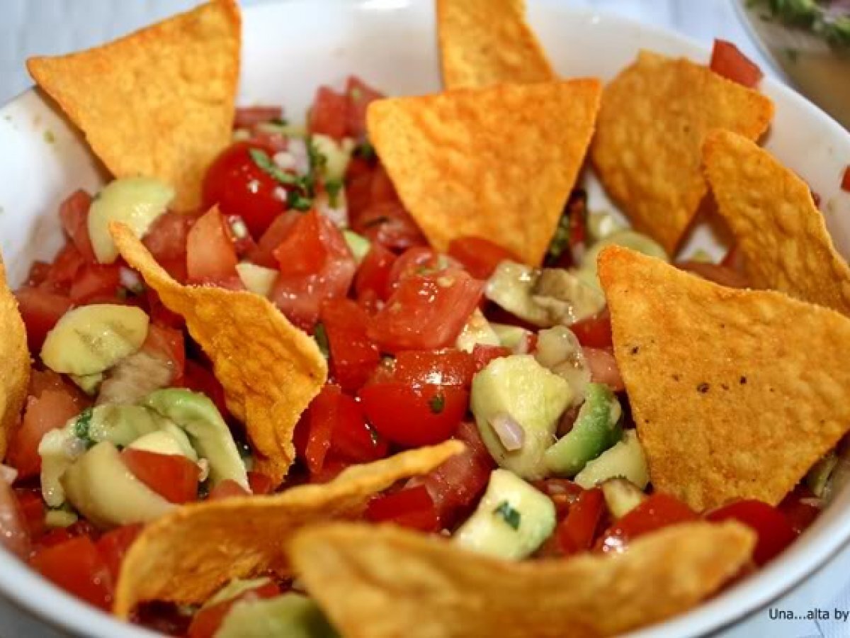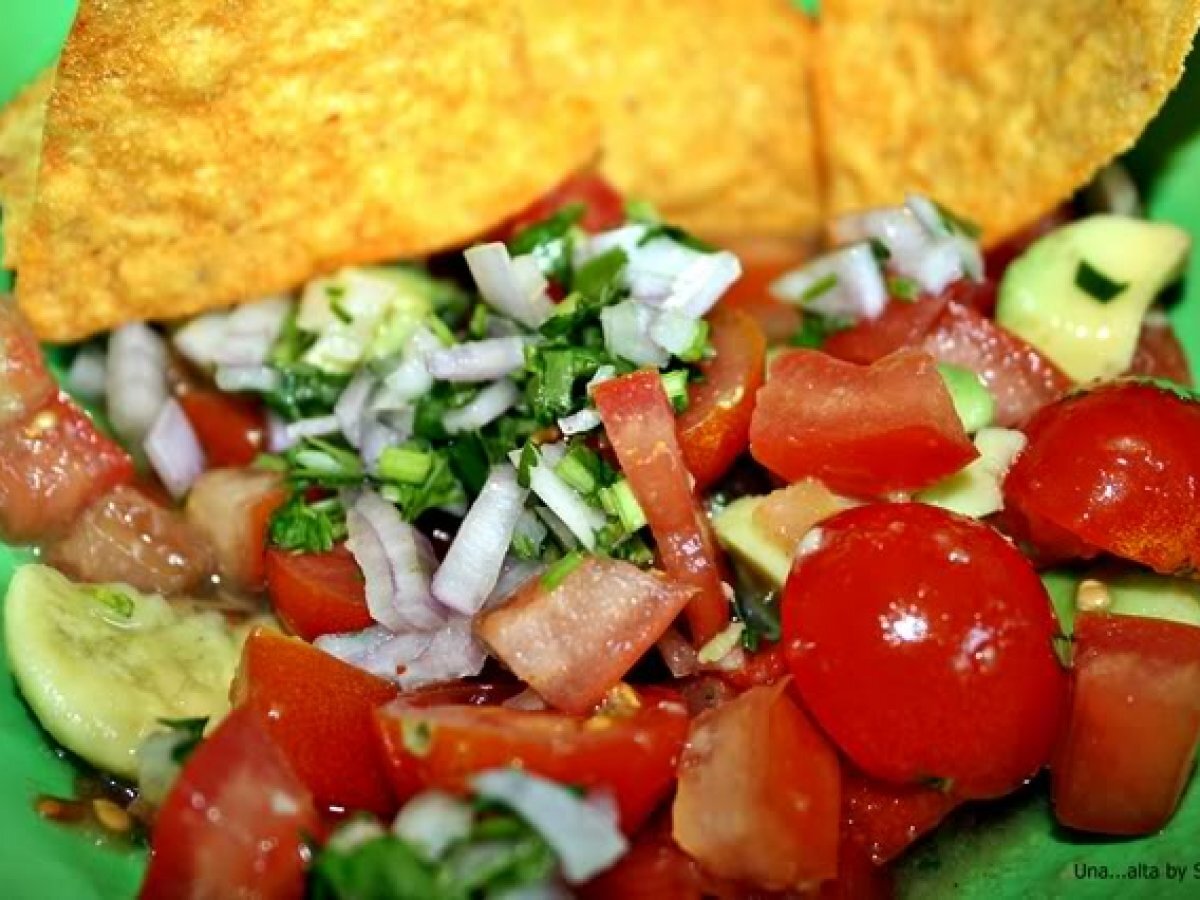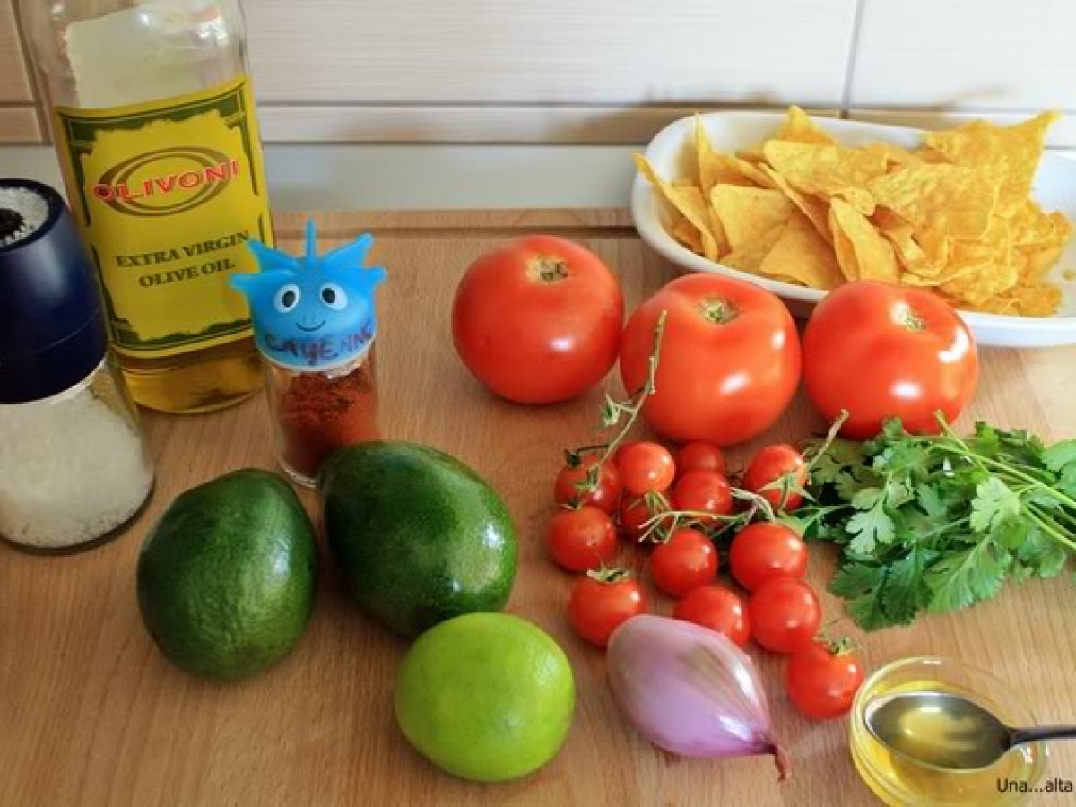 Salata mexicana - cu avocado, rosii si dressing cu coriandru PrecedentulUrmătorul AntreuriFoarte ușor40 min Trimite unui prieten Printează pagina Adresează o întrebare autorului Postează o poză cu rețeta gătită de tine Ingrediente 4 3 rosii 2 avocado o ceapa rosie o jumatate legatura de coriandru o lingura miere ulei de masline un lime mic ( sucul) ulei de masline sare & piper Cayenne chipuri tortilla pt servit, sau nachos
