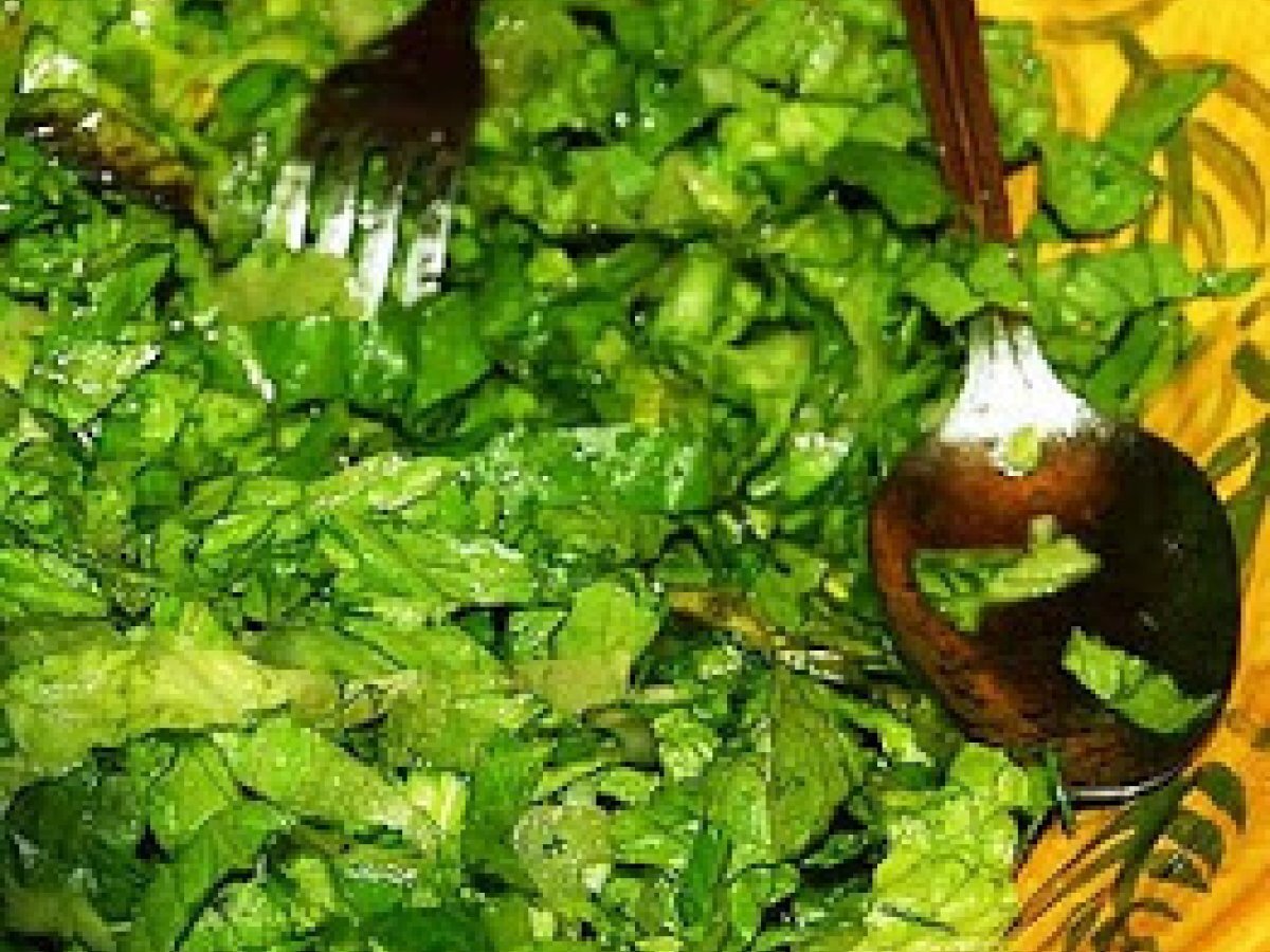 Salata verde AntreuriFoarte ușor10 min133 Kcal Trimite unui prieten Printează pagina Adresează o întrebare autorului Postează o poză cu rețeta gătită de tine Ingrediente 4 1 salata verde mare 2 fire ceapa verde 1 legatura de marar sare, piper 2 lingurite otet balsamic 20 g ulei de masline Cost estimat: 2.33Euros€ (0.58€/porție)