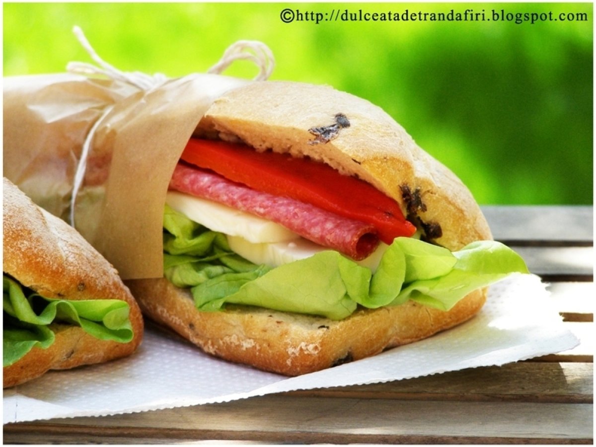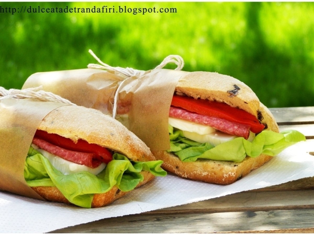 Sandwich italienesc PrecedentulUrmătorul AntreuriFoarte ușor5 min Trimite unui prieten Printează pagina Adresează o întrebare autorului Postează o poză cu rețeta gătită de tine Ingrediente 2 Pentru doua sandwich-uri indestulatoare: 1. 2 ciabatta cu masline 2. 4-5 foi de salata (poti folosi rucola in loc de salata verde) 3. 4 felii mari de salam 4. 8 felii de mozzarella 5. 1 ardei capia copt 6. pasta de usturoi (sau usturoi pisat amestecat cu putin ulei de masline)