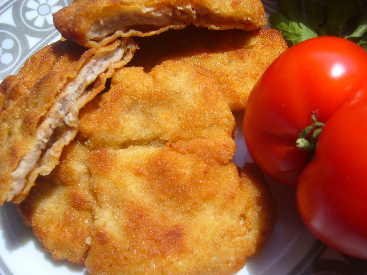 Snitel pane de porc PrecedentulUrmătorul AntreuriFoarte ușor1 oră Trimite unui prieten Printează pagina Adresează o întrebare autorului Postează o poză cu rețeta gătită de tine Ingrediente 6 600 gr carne macra de porc, 100 ml ulei, 2 oua, 50 gr faina, 150 gr pesmet alb, sare, piper, boia de ardei dulce