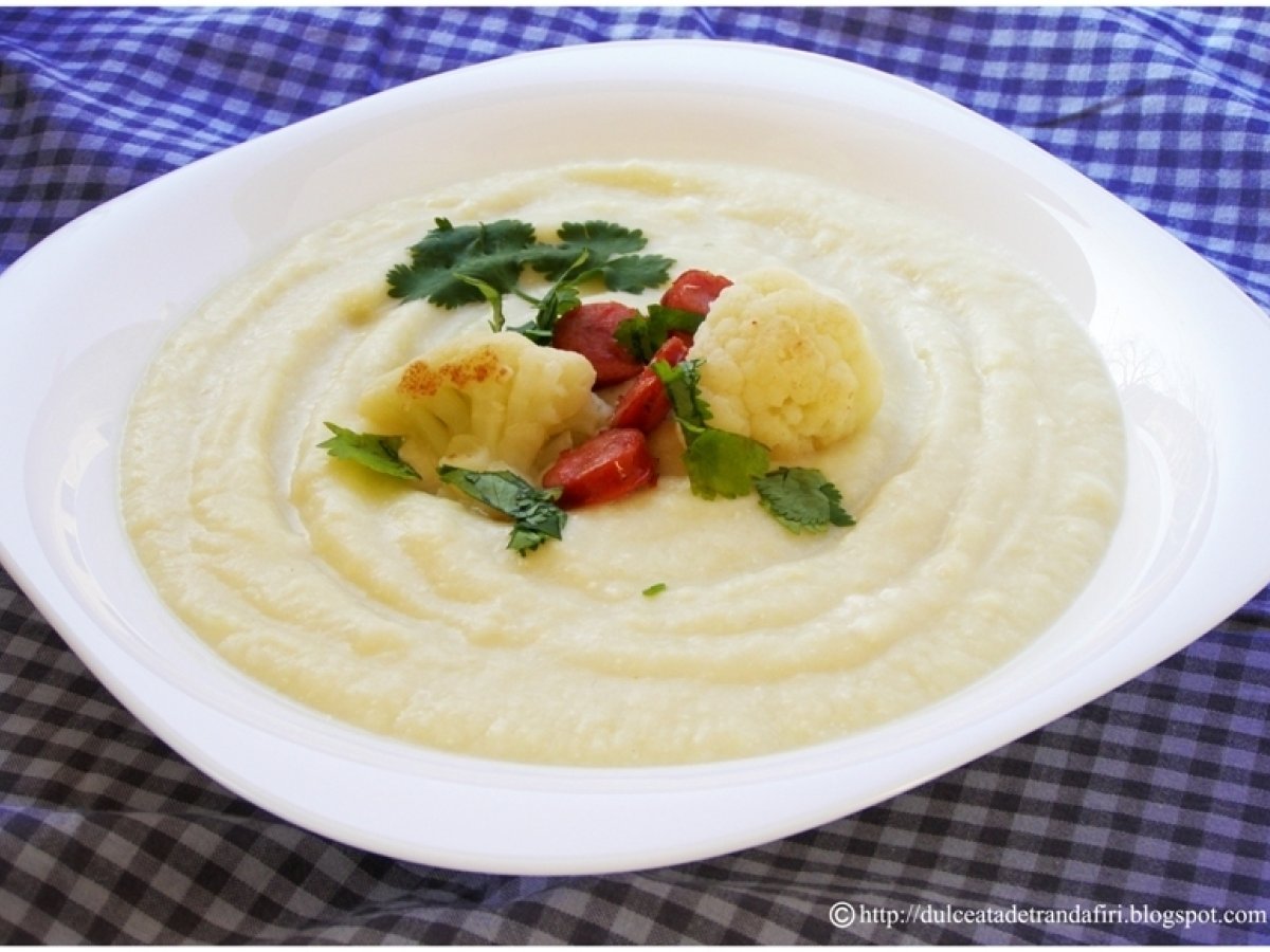 Supa crema de conopida PrecedentulUrmătorul AntreuriFoarte ușor25 min Trimite unui prieten Printează pagina Adresează o întrebare autorului Postează o poză cu rețeta gătită de tine Ingrediente 8 Pentru 4 portii: 1. 450 gr conopida 2. 2 cartofi mici 3. 1 ceapa mica 4. 10 gr unt 5. 2 linguri cu varf de smantana 6. 250 ml lapte 7. 400 ml supa de legume (sau 400 ml apa plus un cubulet Knorr) 8. 2 linguri de ulei 9. un cabanos sau un chorizo 10. coriandru proaspat
