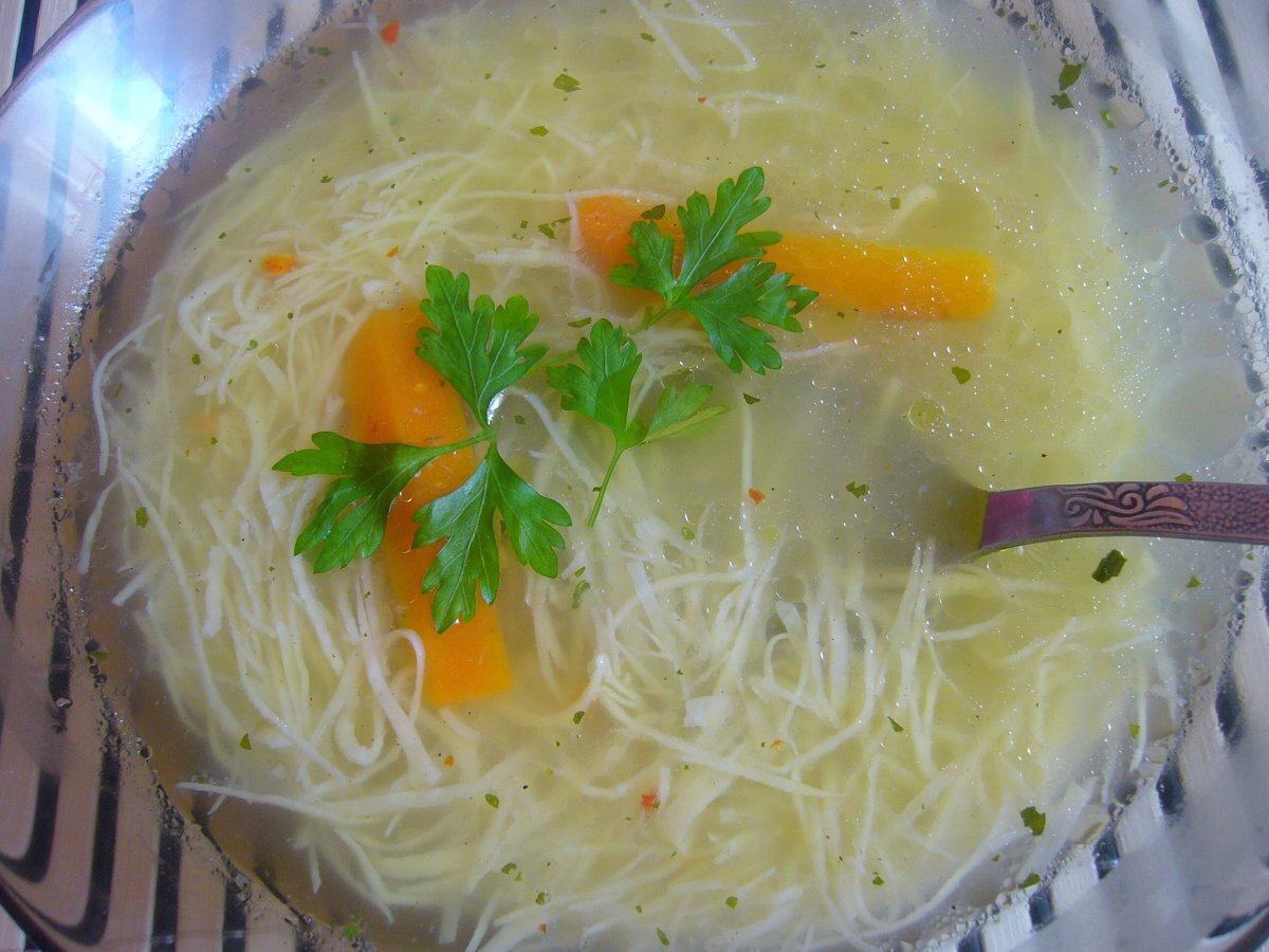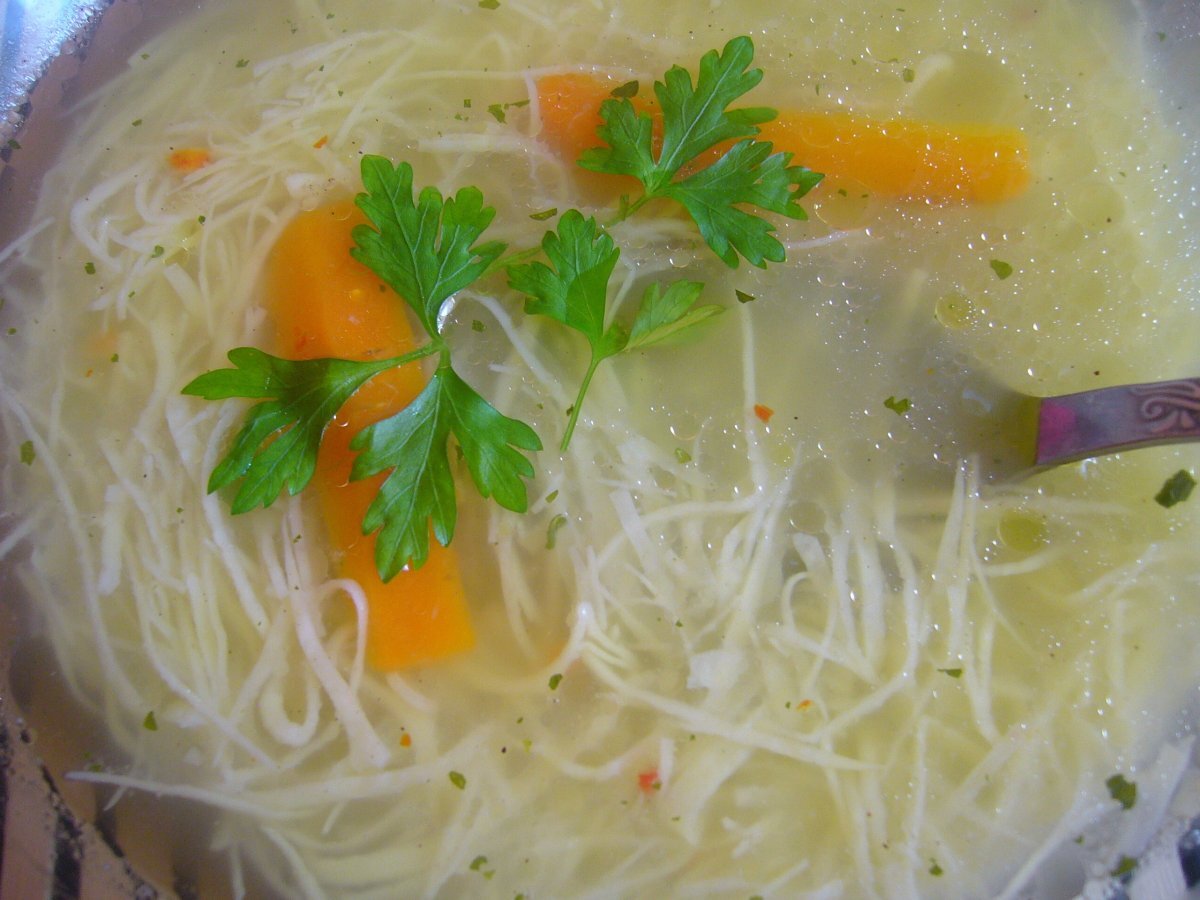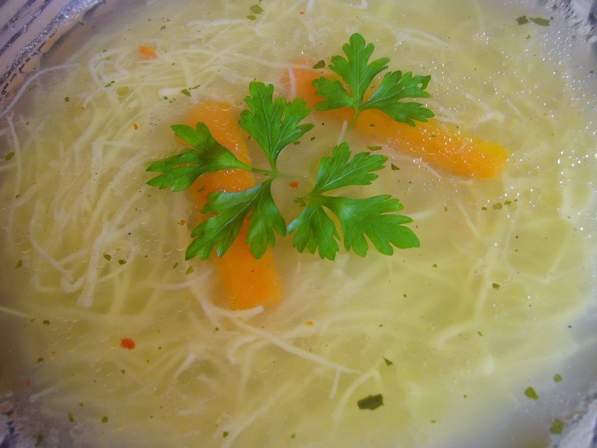 Supa de pui cu taitei de casa PrecedentulUrmătorul AntreuriFoarte ușor55 min Trimite unui prieten Printează pagina Adresează o întrebare autorului Postează o poză cu rețeta gătită de tine Ingrediente 6 1 pui, 4 morcovi potriviti, 2 patrunjei radacina, 1/2 telina mica, 1 ceapa, 1 catel mic de usturoi, sare, piper boabe, taitei de casa, putin knorr delicat, frunze de patrunjel