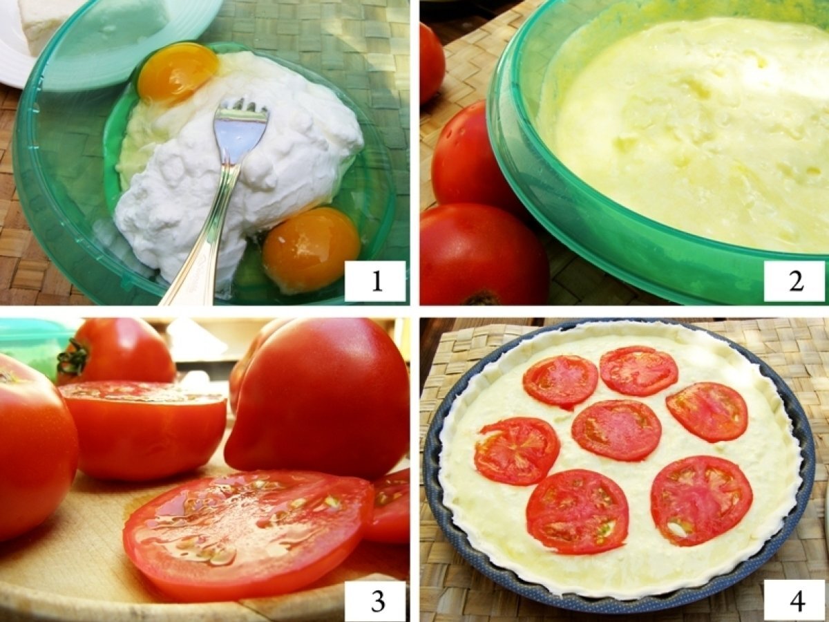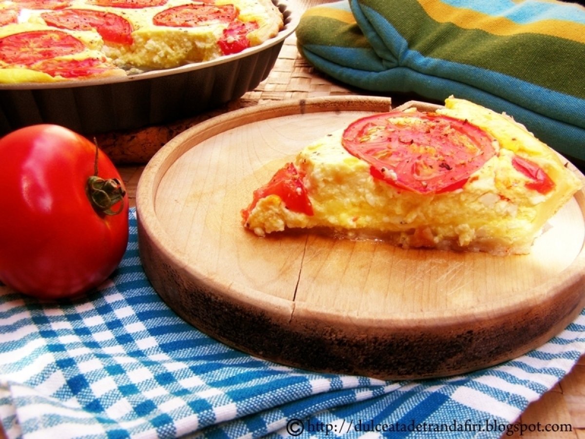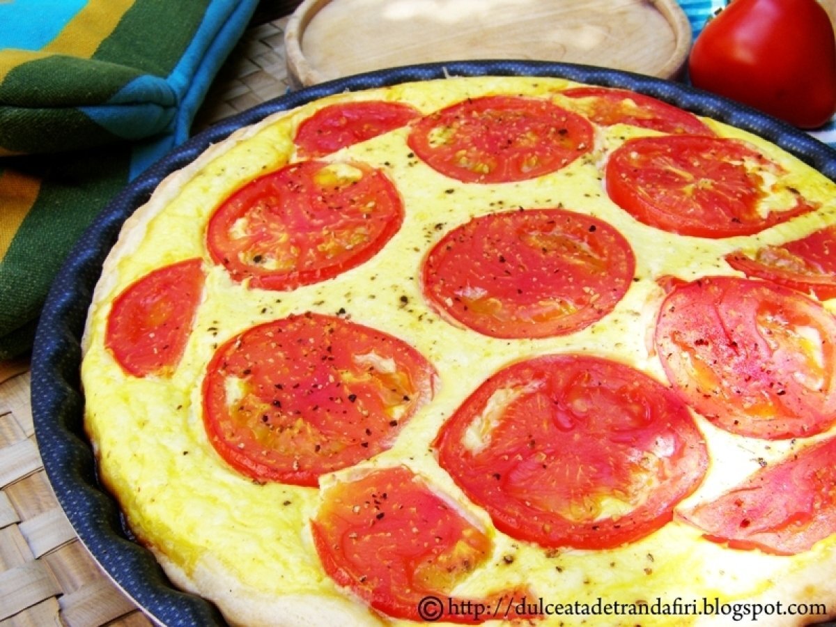 Tarta cu telemea si rosii PrecedentulUrmătorul AntreuriFoarte ușor45 min Trimite unui prieten Printează pagina Adresează o întrebare autorului Postează o poză cu rețeta gătită de tine Ingrediente 4 Iti trebuie o tava dreptunghiulara mica sau o forma de tarta cu diametrul de 24 cm. Am folosit: 1. 400 gr aluat de foietaj 2. 350 gr telemea de oaie scursa bine 3. 300 gr smantana 4. 2 oua 5. 2-3 rosii 6. piper