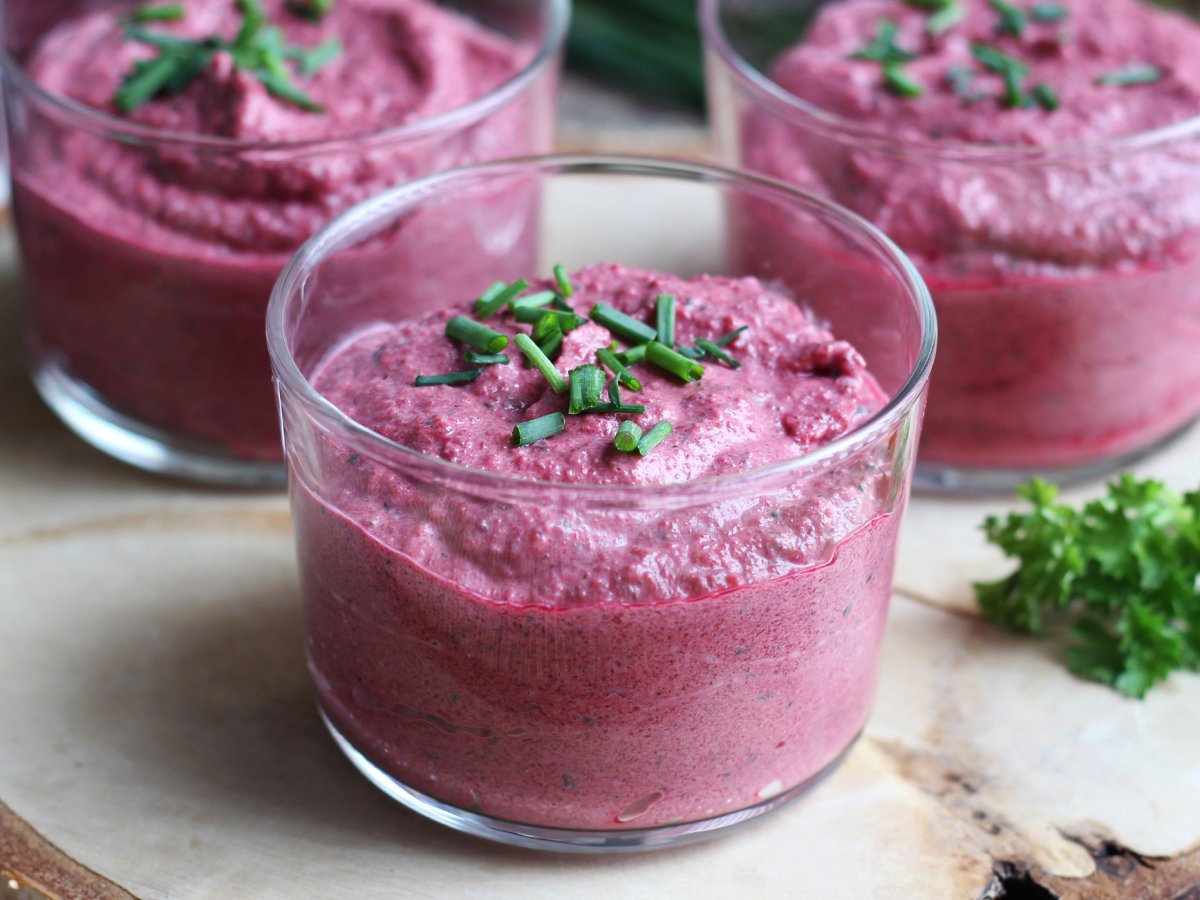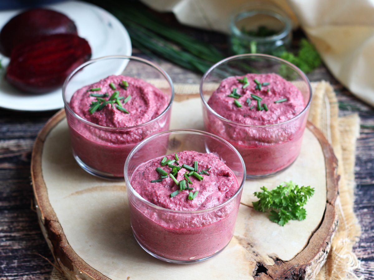 Vrei culoare în meniul tău? Sfecla roșie va fi cel mai bun prieten al tău pentru asta! Doar amestecată cu cremă de brânză și câteva plante aromatice, veți obține cremă din sfeclă roșie. Încearcă-l, te asigurăm că o să-ți placă ;-) Și este super ușor de făcut și fără gătit: ce ai mai putea cere?!