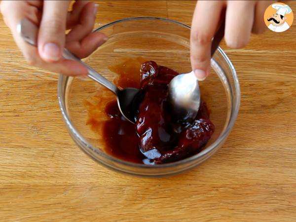 Adaugati amestecul de amidon de porumb si apa si amestecati pentru a ingrosa sosul. Strecurati apoi acest sos printr-o sita.