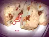 Ingrediente: 1 aluat de foietaj - 400 g 1 pachet de crema de branza 2 ou 3-4 linguri smantana 1/2 praz 1/2 ardei rosu 1 rosie prosciutto crud sare piper ulei...
