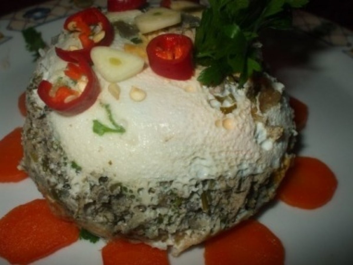 Aperitiv cu ficatei de pui si oua (mini drob) AperitivUșor2 ore Trimite unui prieten Printează pagina Adresează o întrebare autorului Postează o poză cu rețeta gătită de tine Ingrediente 4 500 g ficatei de pui 2 cepe rosii (2 legaturi ceapa verde) 150 g ciuperci champignon 12-18 oua 1 legatura marar 1 legatura patrunjel 2 linguri smantana 7-8 felii branza topita (cascaval) 10 ml ulei 1 lingurita ketchup 2 lingurte faina 2 lingurite pesmet unt cat o nuca 1 peperoni sare, piper. 1 praf de cimbru