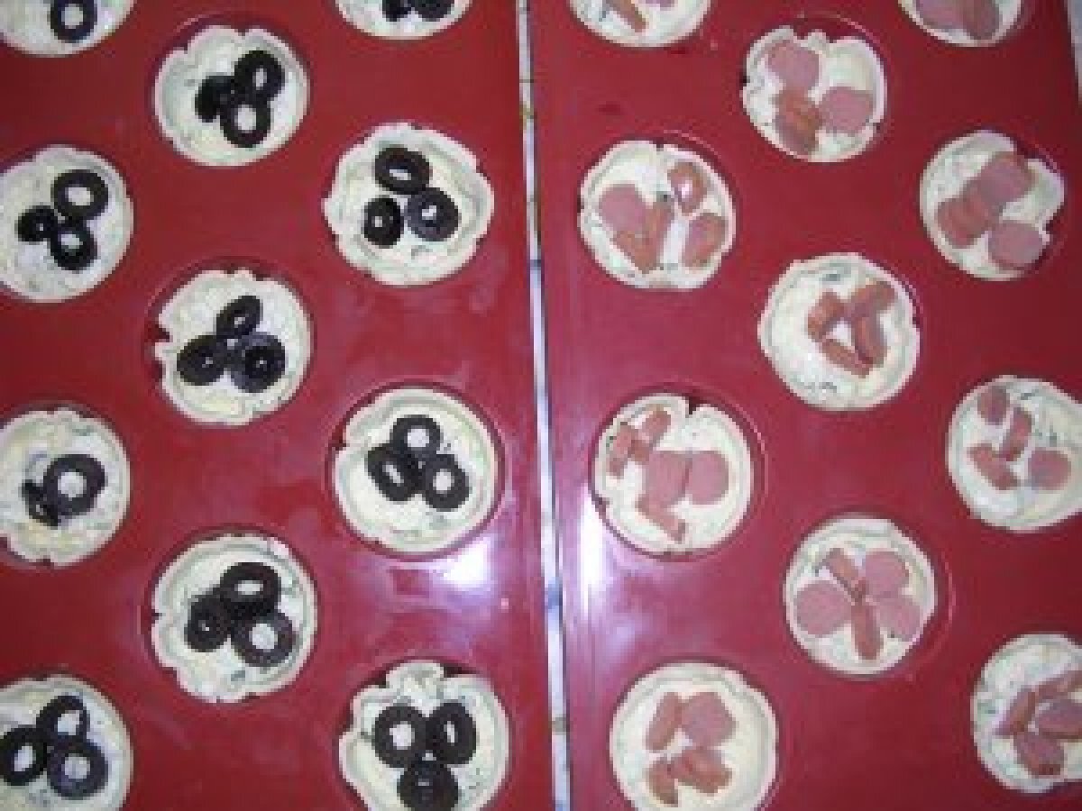 Aperitive din foietaj PrecedentulUrmătorul AperitivFoarte ușor35 min Trimite unui prieten Printează pagina Adresează o întrebare autorului Postează o poză cu rețeta gătită de tine Ingrediente 6 2 pachete foietaj, 200 g branza, 50 g smantana, 2 oua, 2 carnaciori, 50 g masline, patrunjel tocat, 2 lnguri suc de rosii, cateva cubulete de mozarella, origano, seminte de susan si mac, sare.