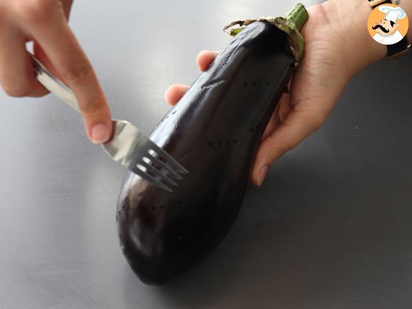 Mai întâi, spălați și înțepați vânăta cu o furculiță.