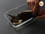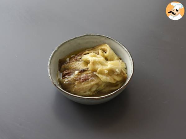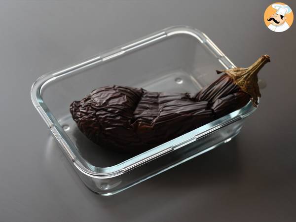 Puneți vinetele prăjite într-un recipient ermetic timp de aproximativ 15 minute. Tehnica funcționează și cu alte legume prăjite. Odată cu aburul degajat de legumele fierbinți, pielea se va desprinde mai ușor. Aveți grijă să nu vă ardeți când deschideți recipientul. Lăsați puțin la răcit înainte de a îndeparta pielea.