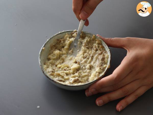 Amestecați totul cu o furculiță, zdrobind vinetele și încorporând bine.
