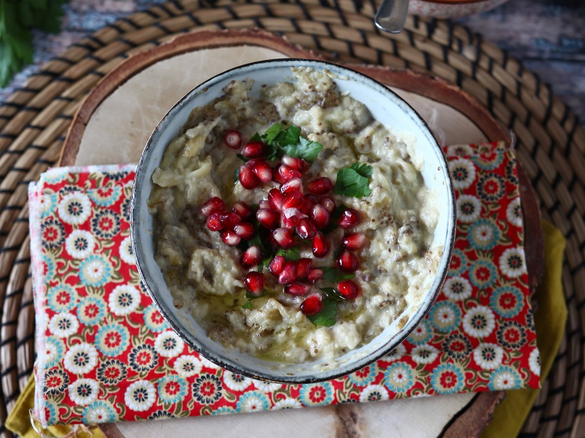 Baba ganoush! Știm că bucătăria libaneză este plină de minunății culinare. Învață cum să-ți faci singur această salată plină de arome din Orient, unde susanul, vinetele, lămâia se amestecă cu aroma câtorva semințe de rodie... Descoperă acest amestec exploziv care îți va încânta papilele gustative!