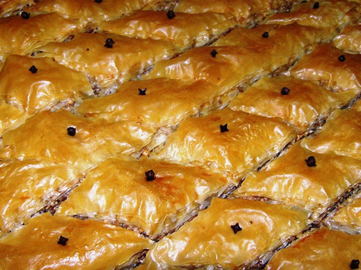 Baclava-dulciuri traditionale turcesti AperitivFoarte ușor40 min Trimite unui prieten Printează pagina Adresează o întrebare autorului Postează o poză cu rețeta gătită de tine Ingrediente 4 foi de placinta in jur de 300 - 350 g 300 g de miez de nuca 200 g de margarina 200 ml esenta de rom 200 ml apa plata