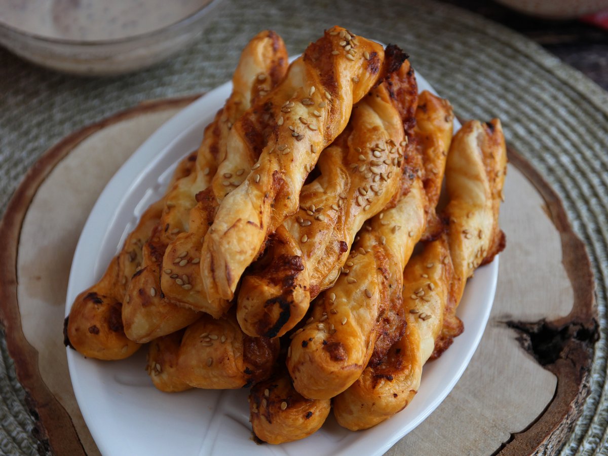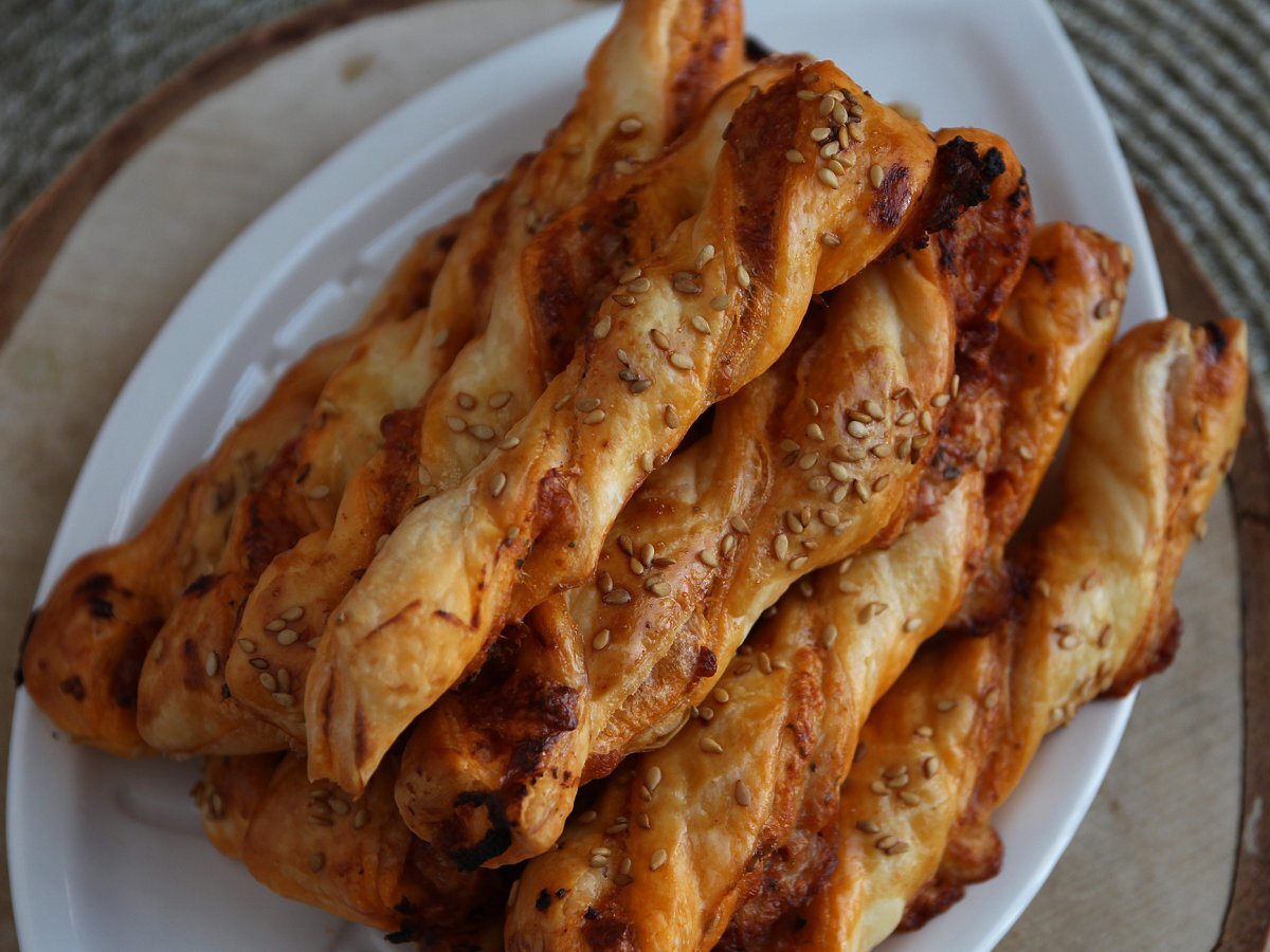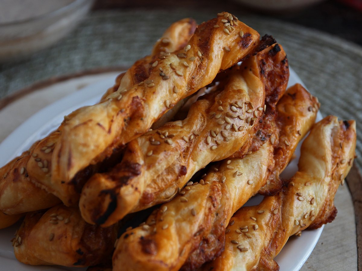 Baghete răsucite cu pesto roșu și mozzarella